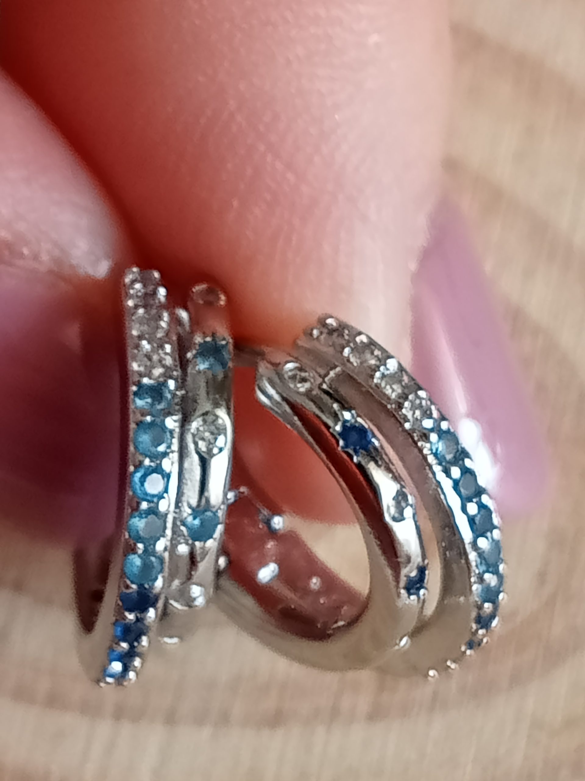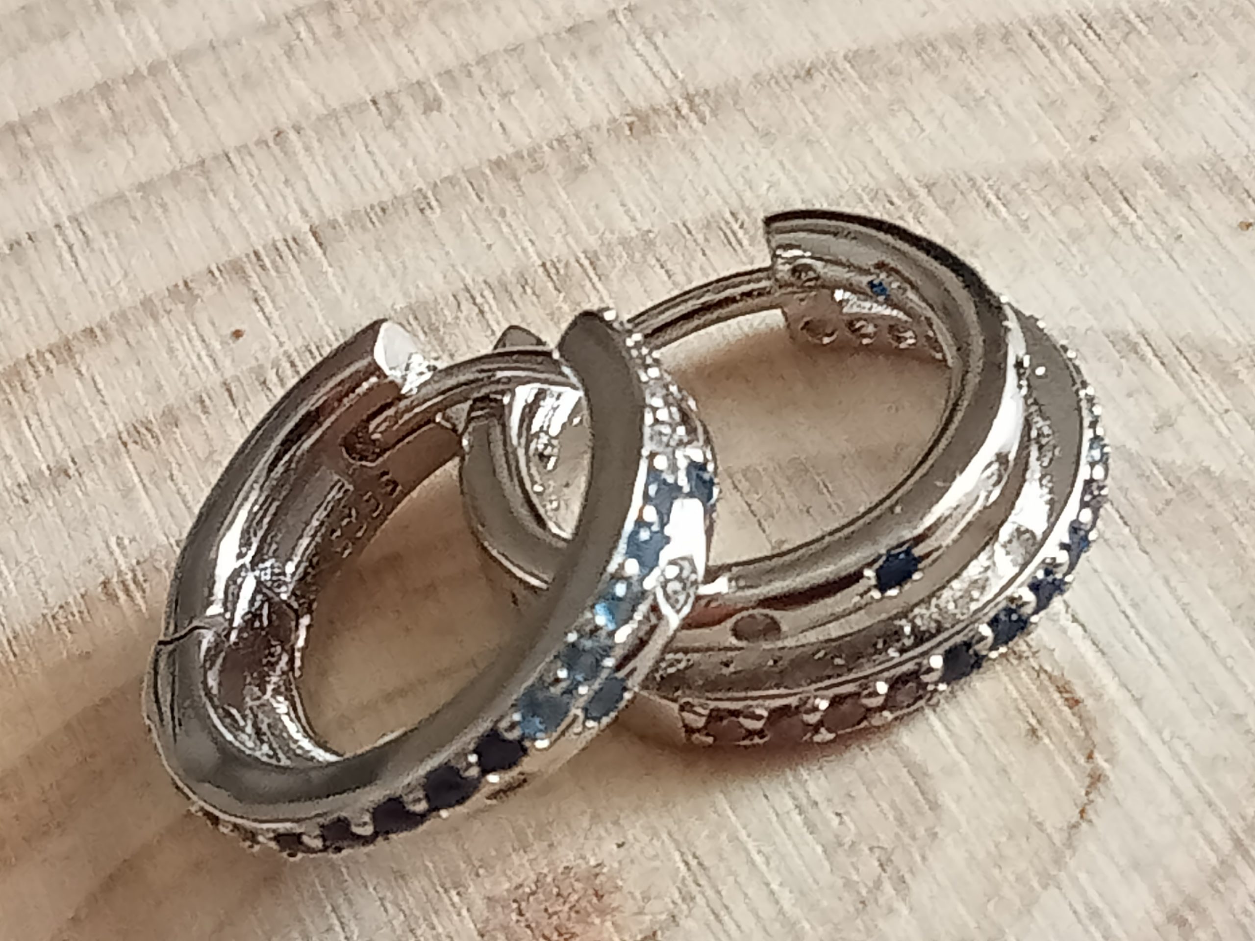 Pendientes Aritos azules con circonitas. Plata 925