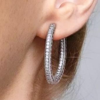 Pendientes aros con corazónes y circonitas Pandora 🥰grandes en plata de primera ley S925 Ale, adornados con circonitas cúbicas transparentes..