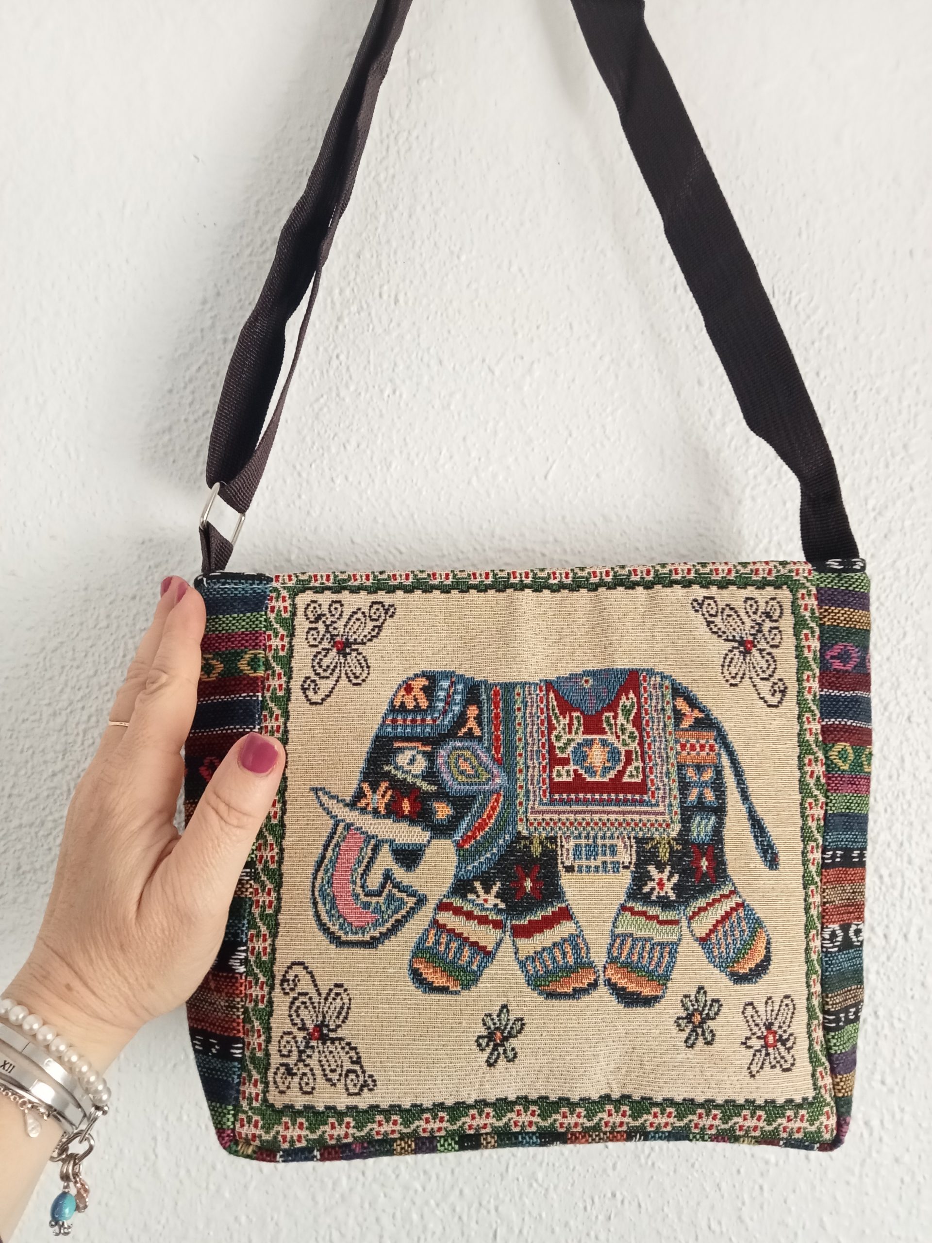 Bonito bolso con asa larga para lleva cruzado . 🐘