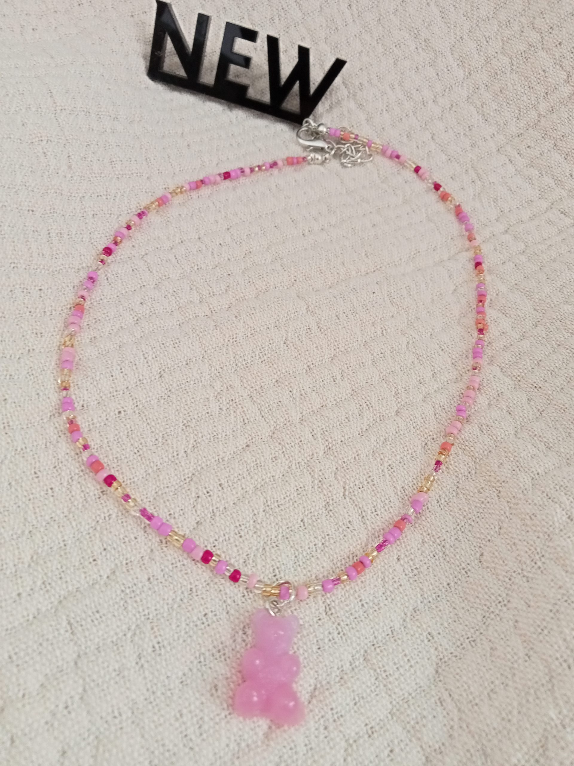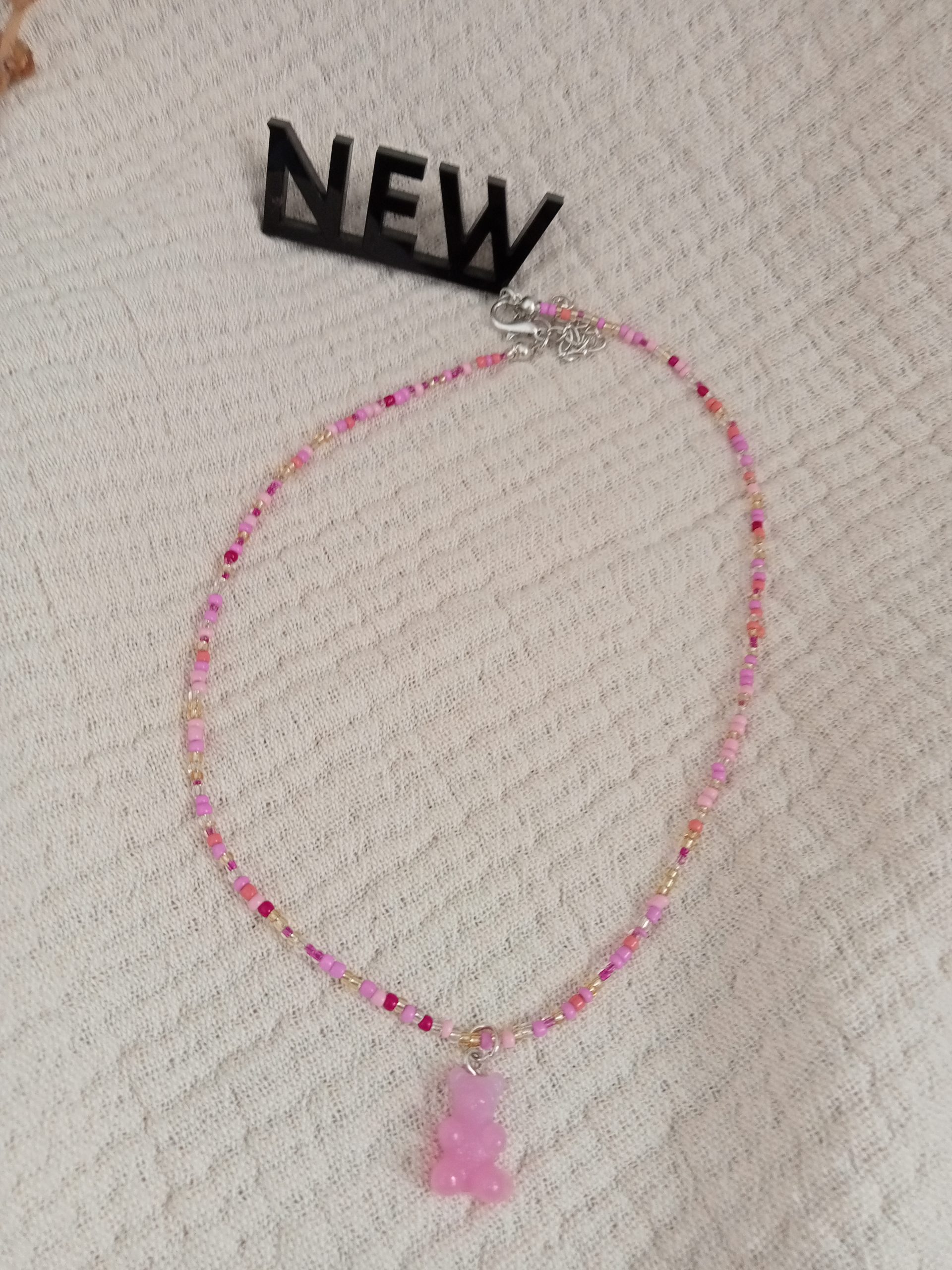 Bonito collar de colores en cristal y osito🧸 de resina .