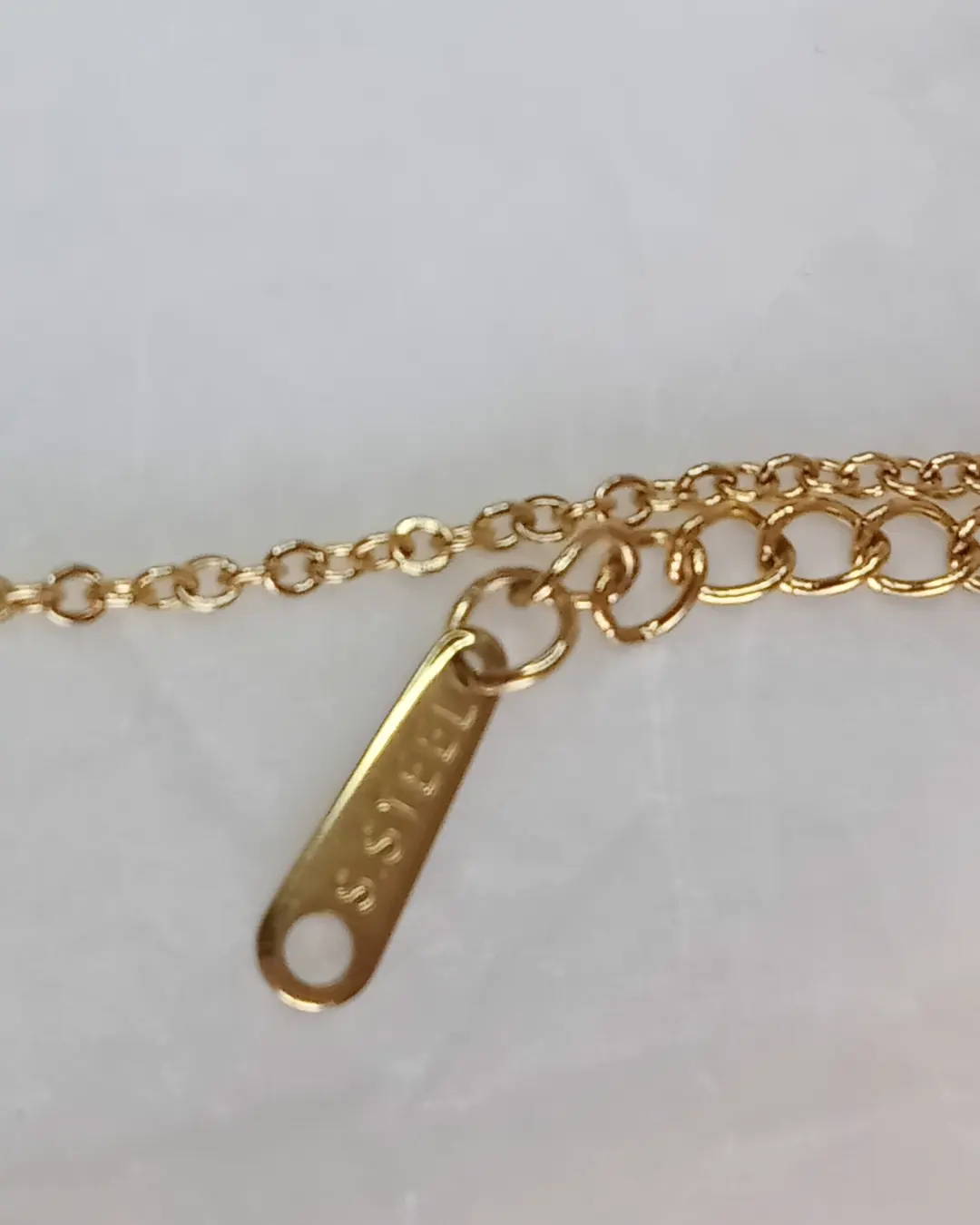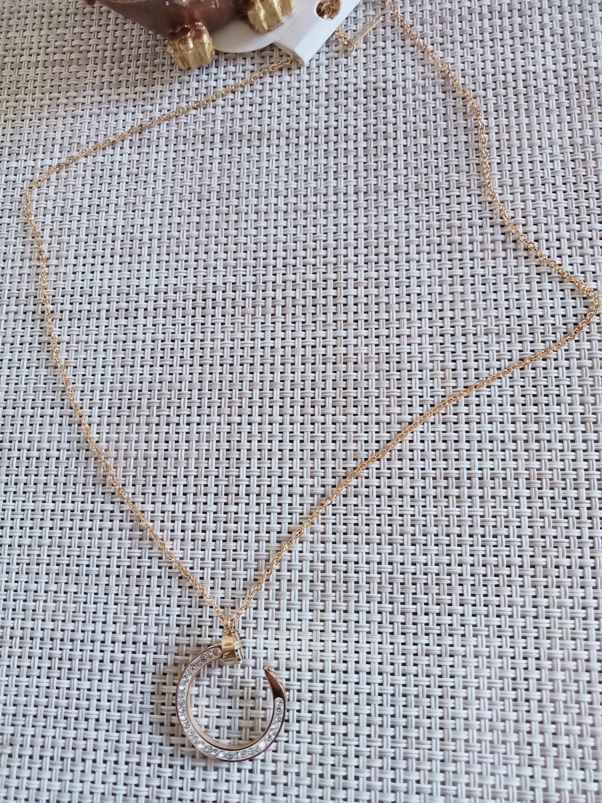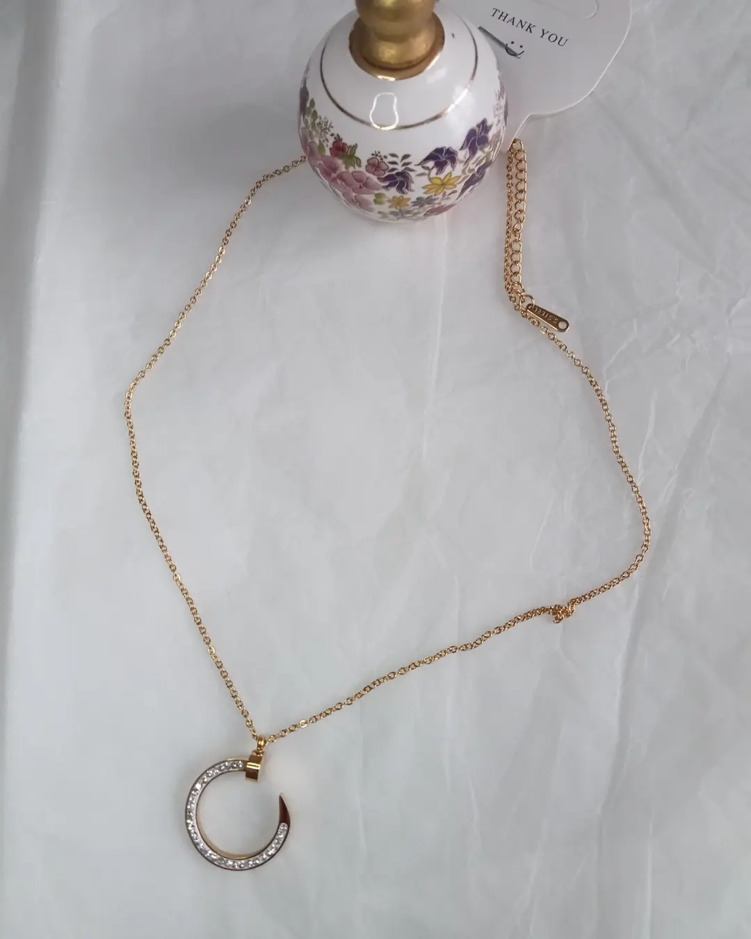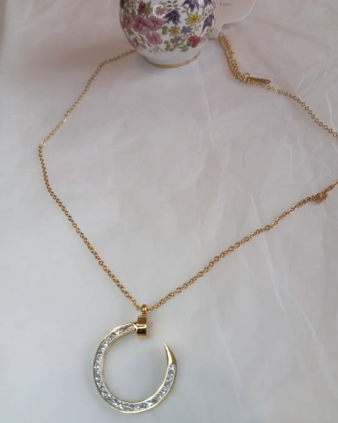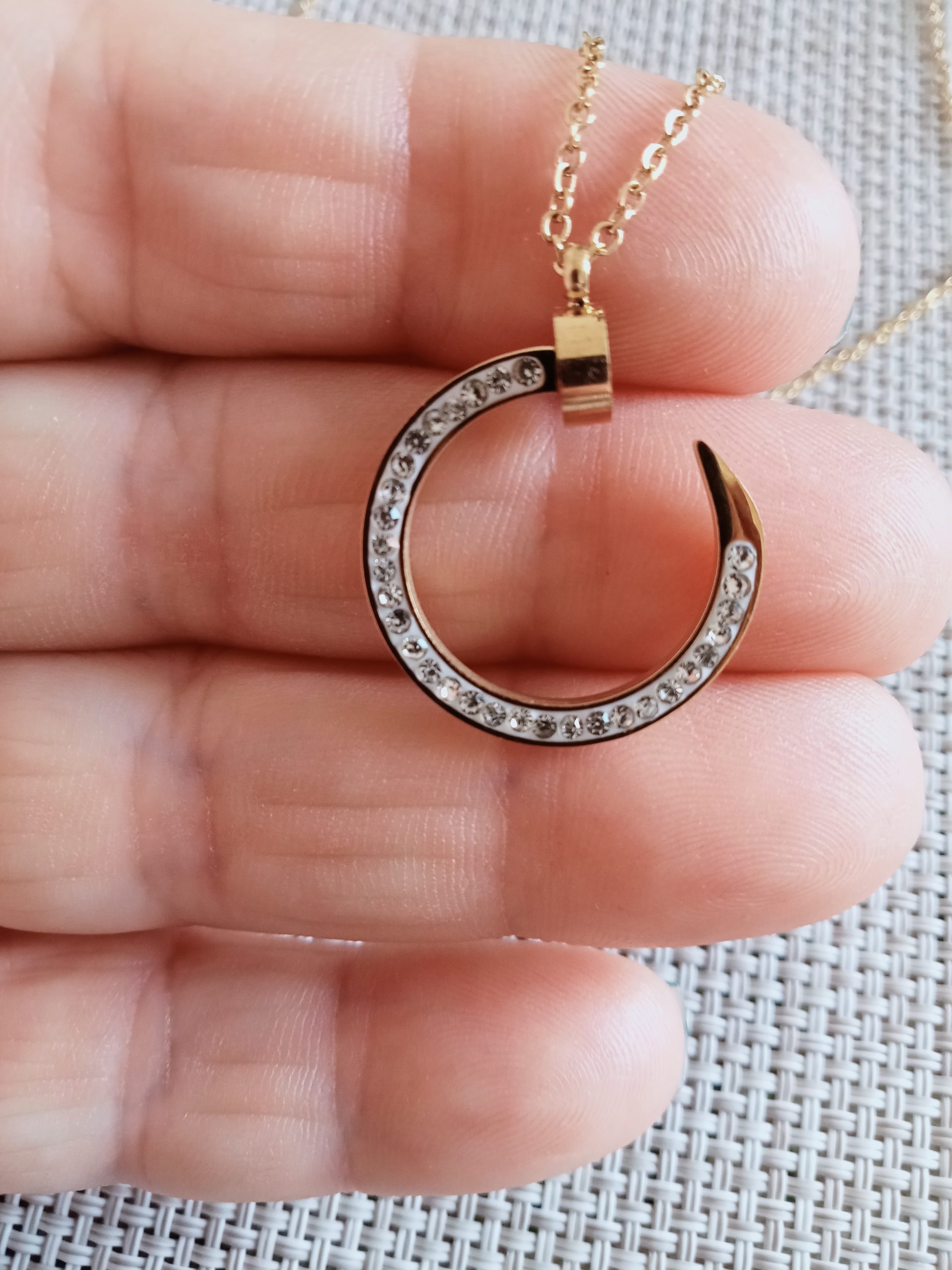 Elegante y discreto colgante con forma de media luna, con incrustaciones de circonitas.