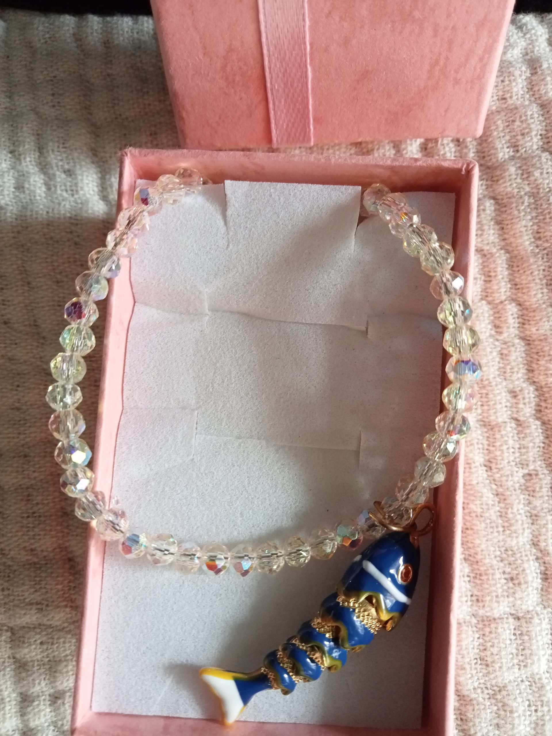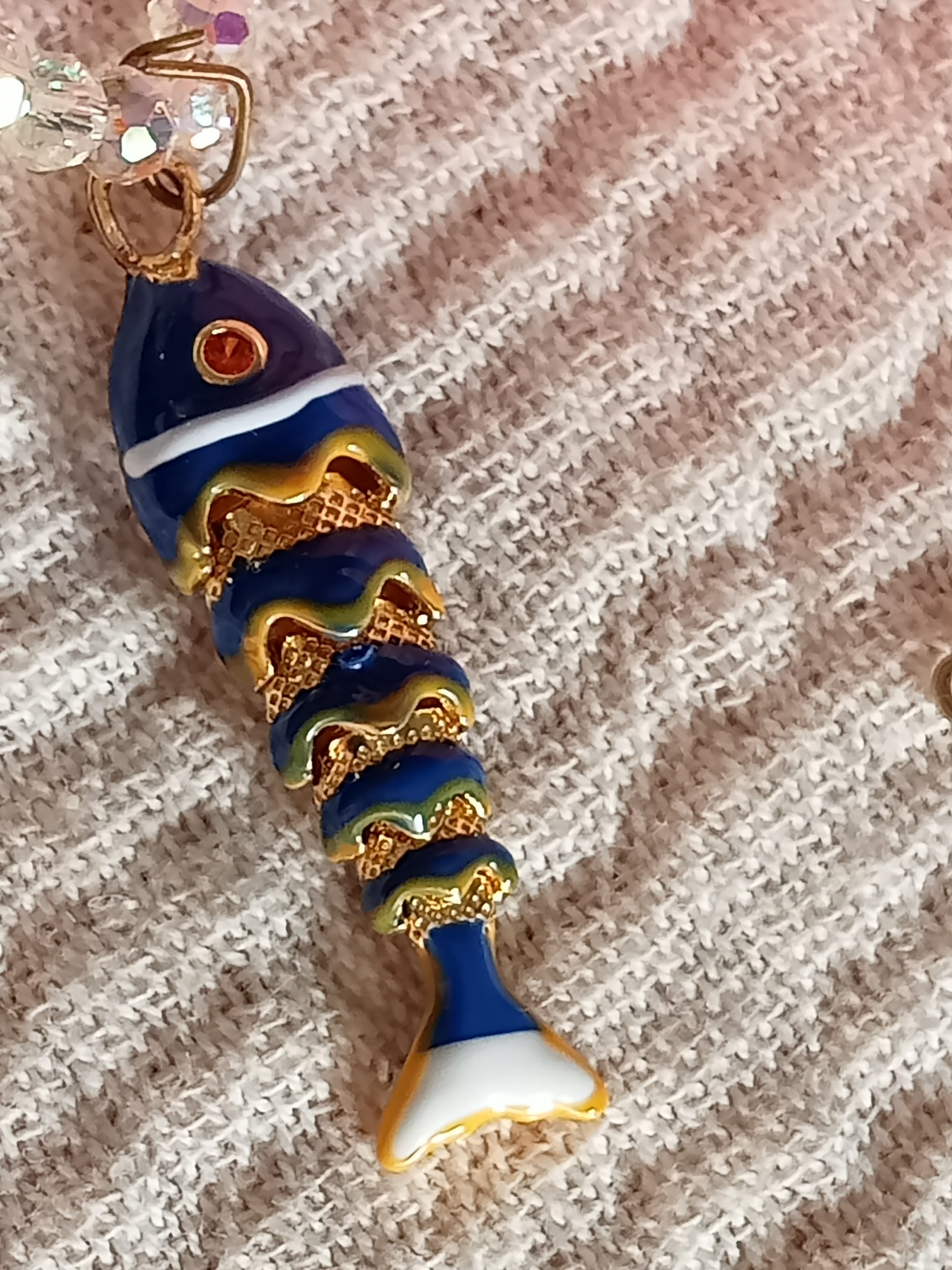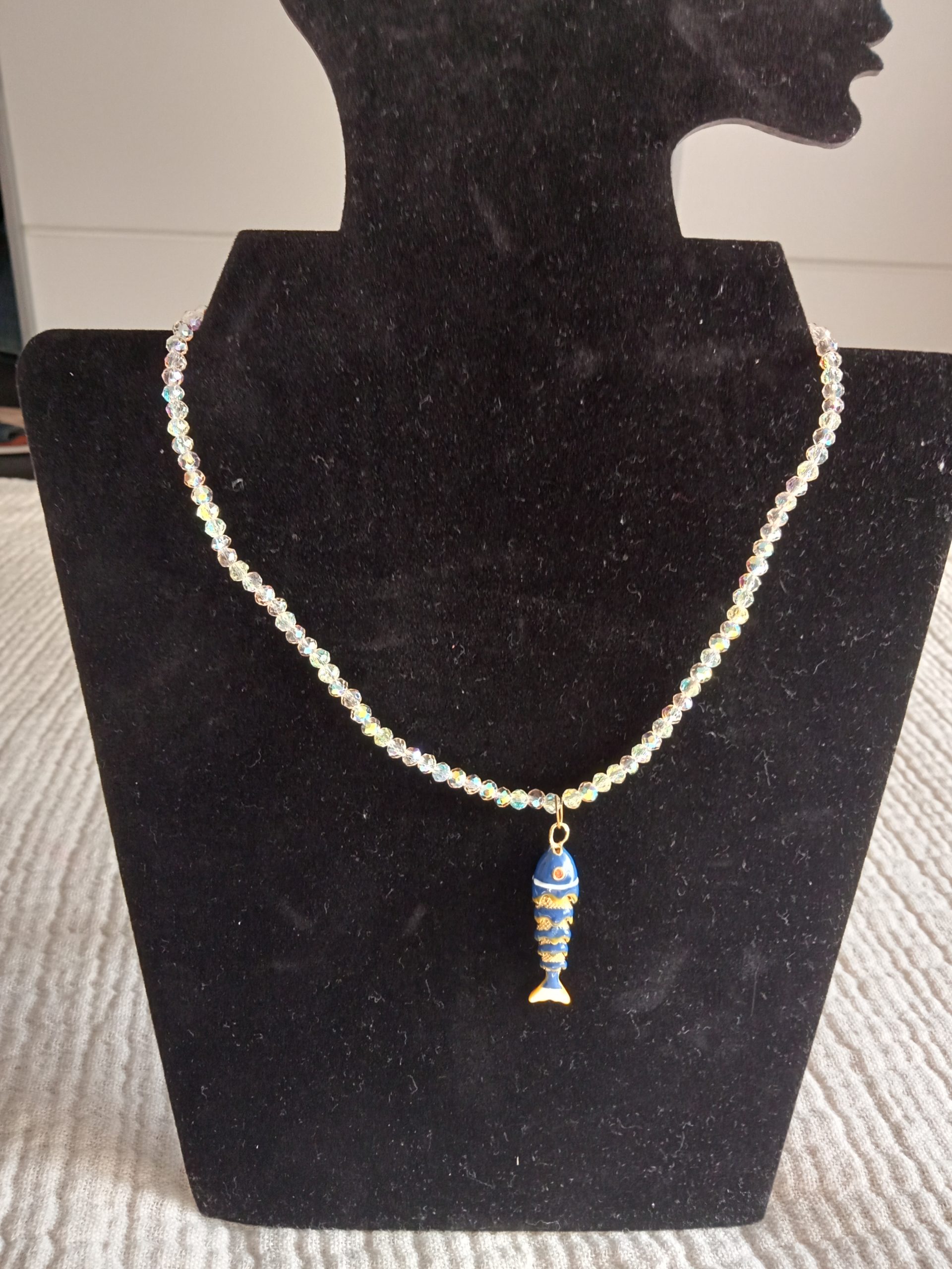 Collar con Colgante de Pez movible ,Esmaltado y Cuentas de Cristal Brillante