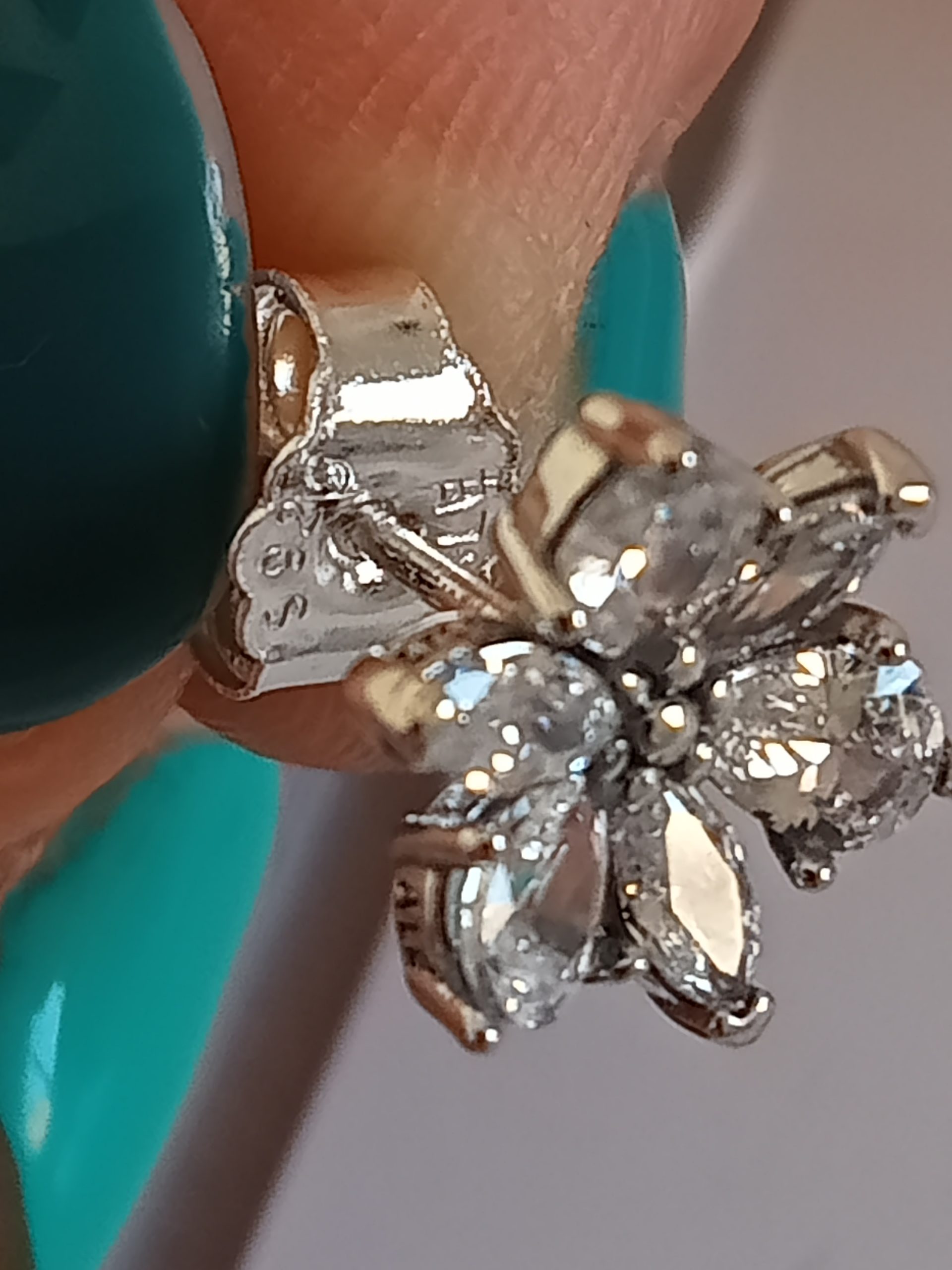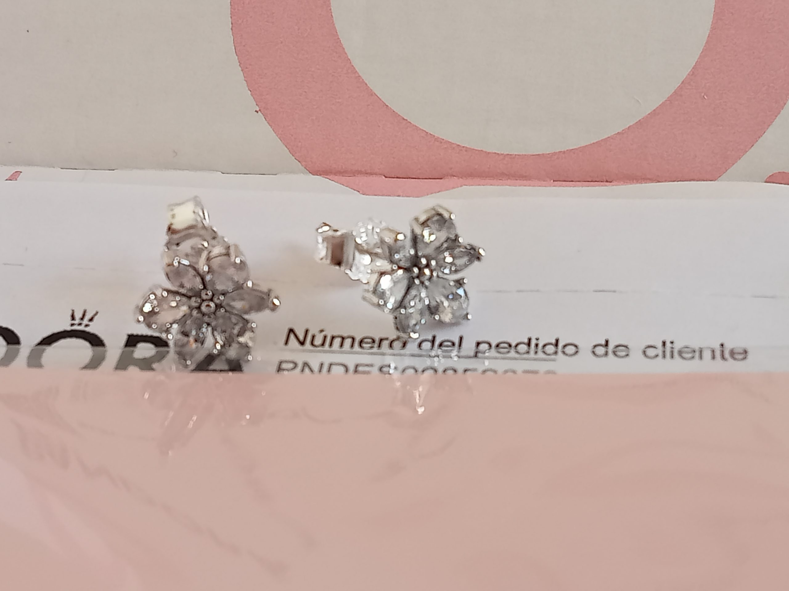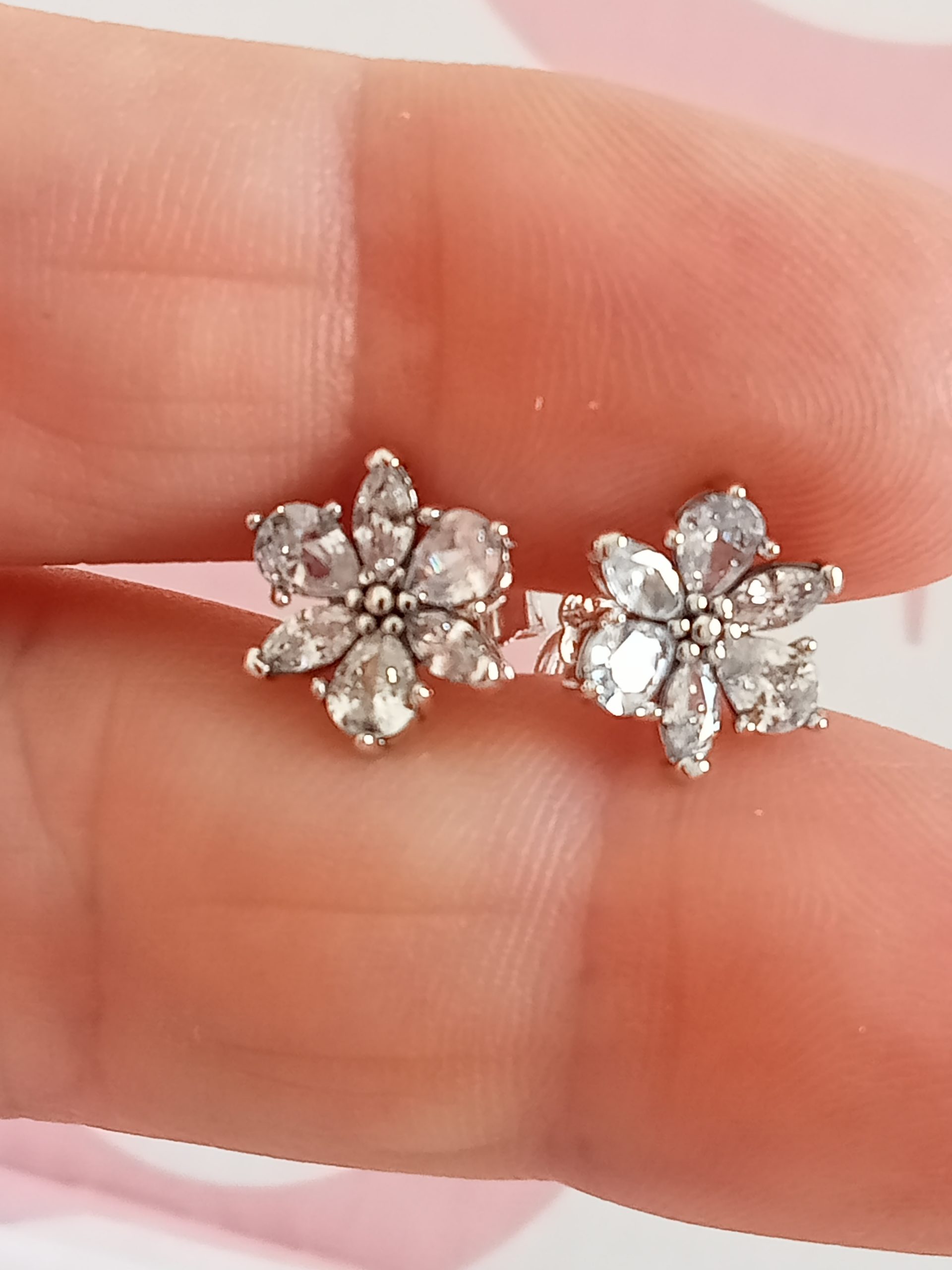 Elegantes pendientes con forma de flor y pétalos de circonitas en plata.