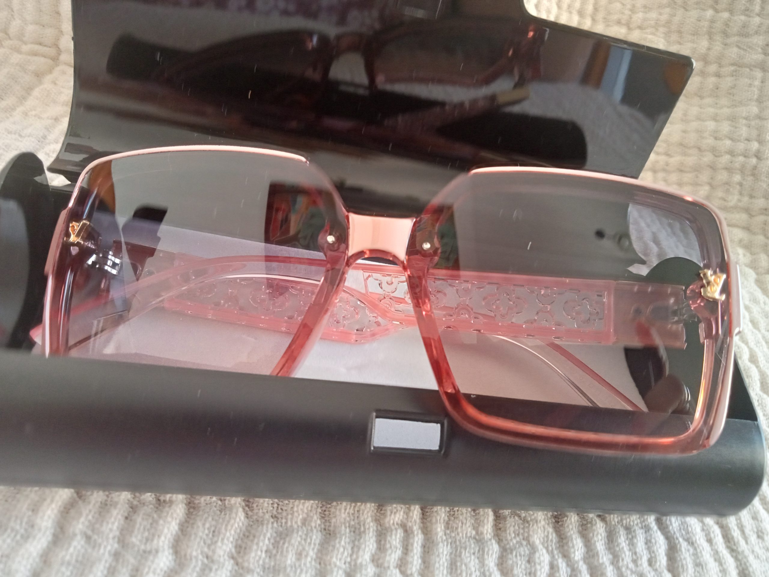 En tonos rosa las patillas con un diseño labrado.