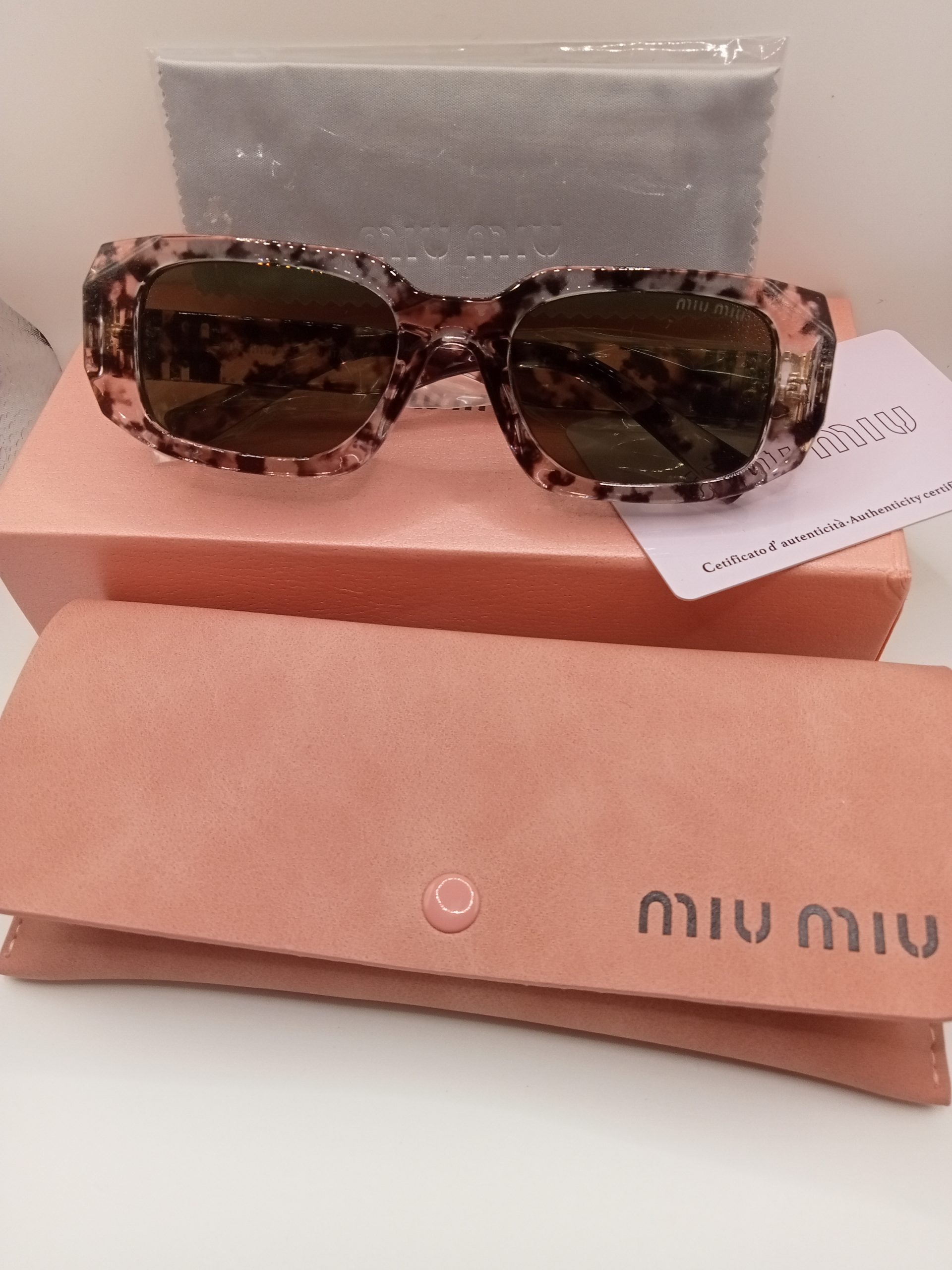 Gafas de Sol Miu Miu Cuadradas de Acetato Efecto Carey transparente Rosado.