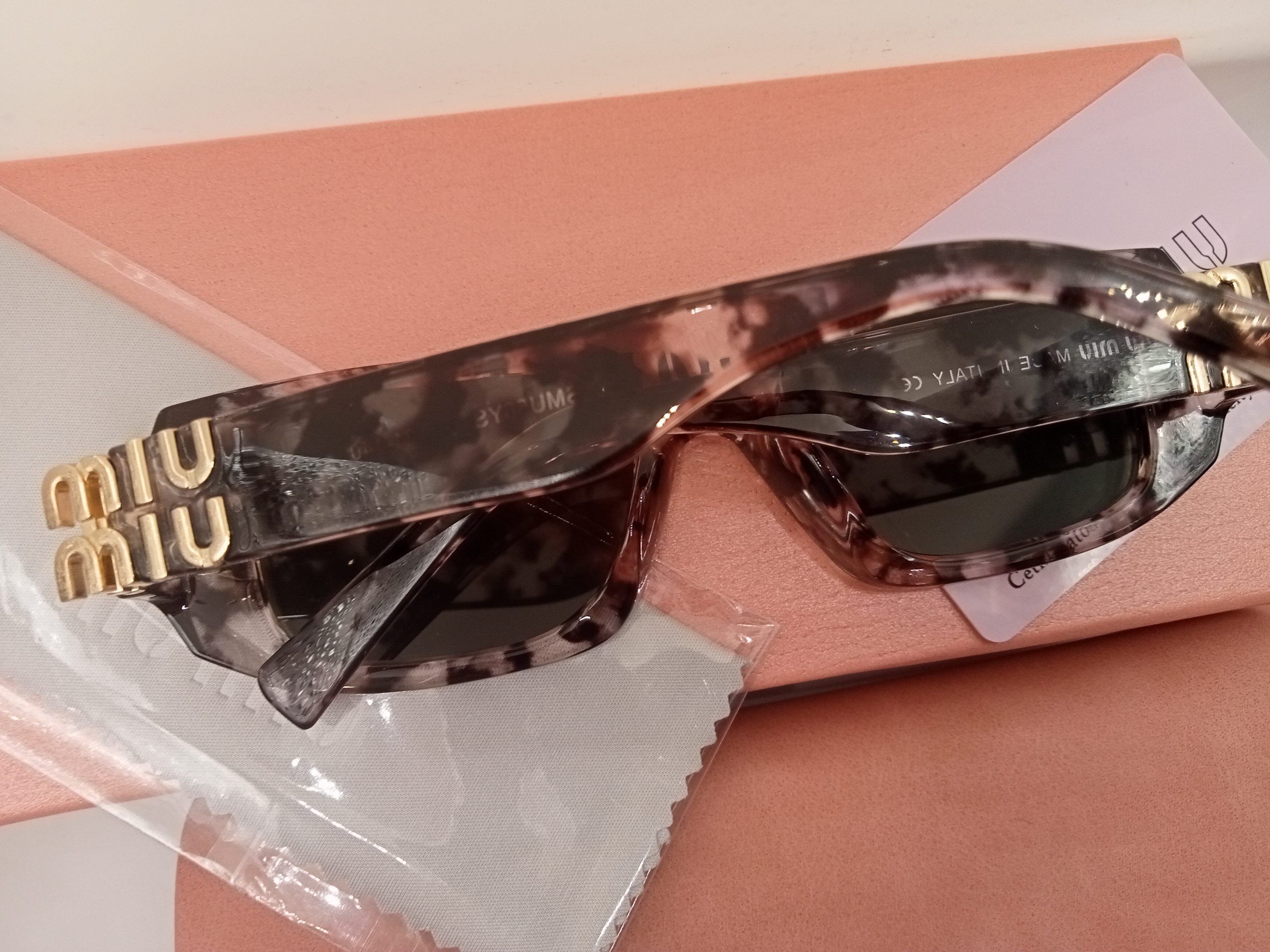 Captura la esencia de la feminidad atrevida y la creatividad sofisticada con estas llamativas gafas de sol Miu Miu. Diseñadas para destacar, combinan una estética moderna con un toque divertido, perfectas para quienes buscan un accesorio verdaderamente especial.
