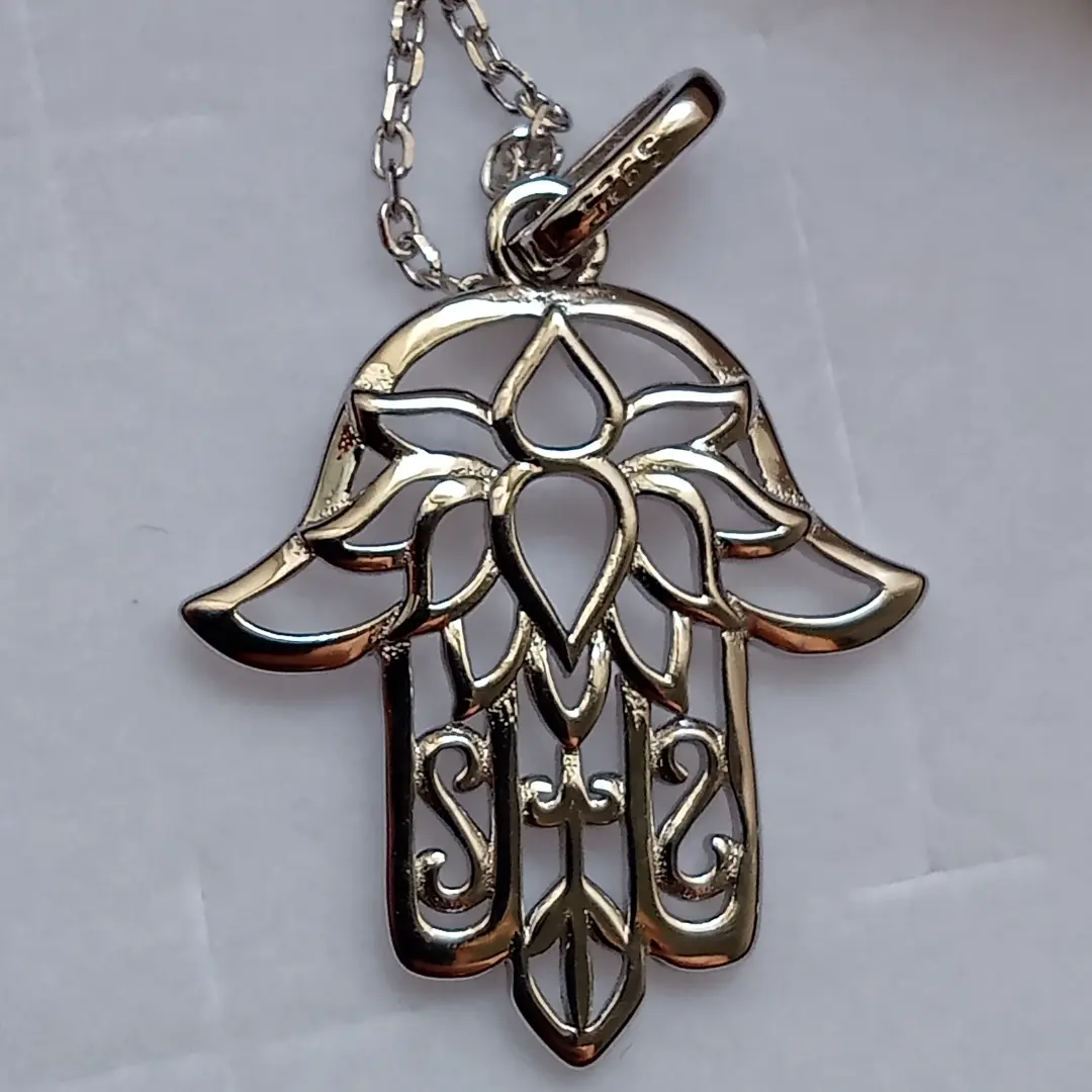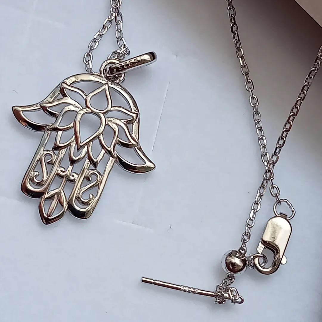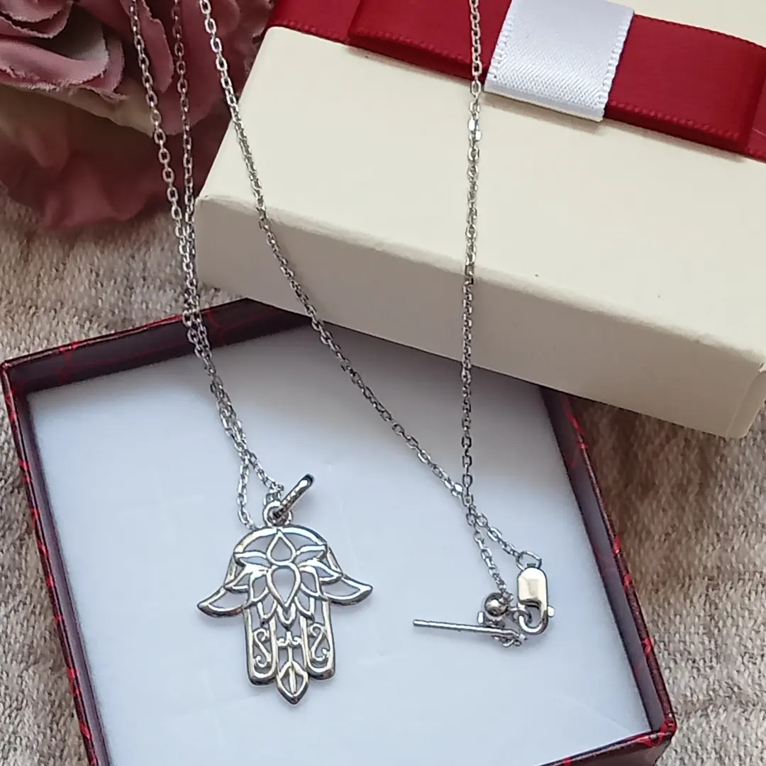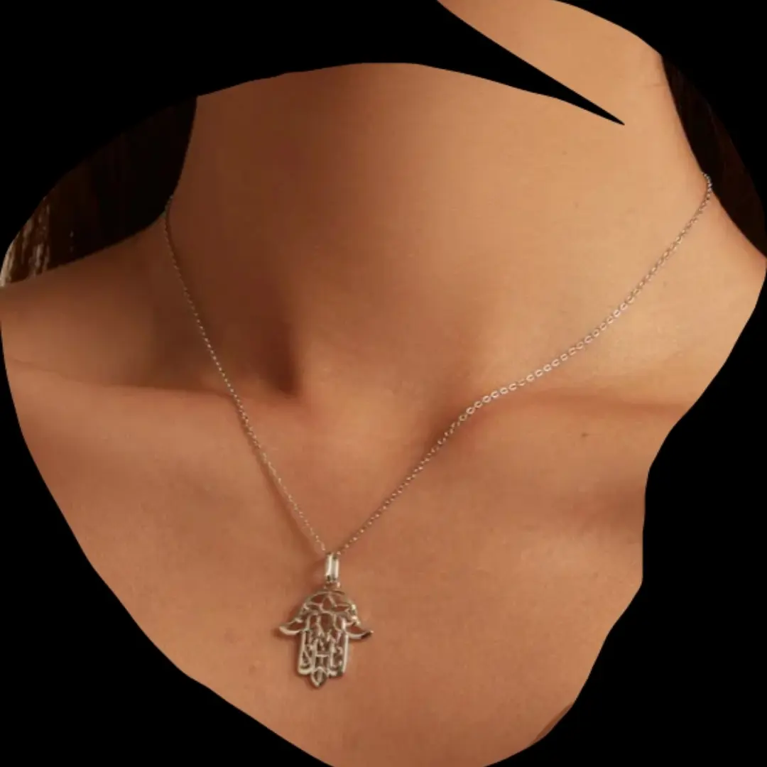 Bonita gargantilla con el colgante de Mano de Fátima,en plata.