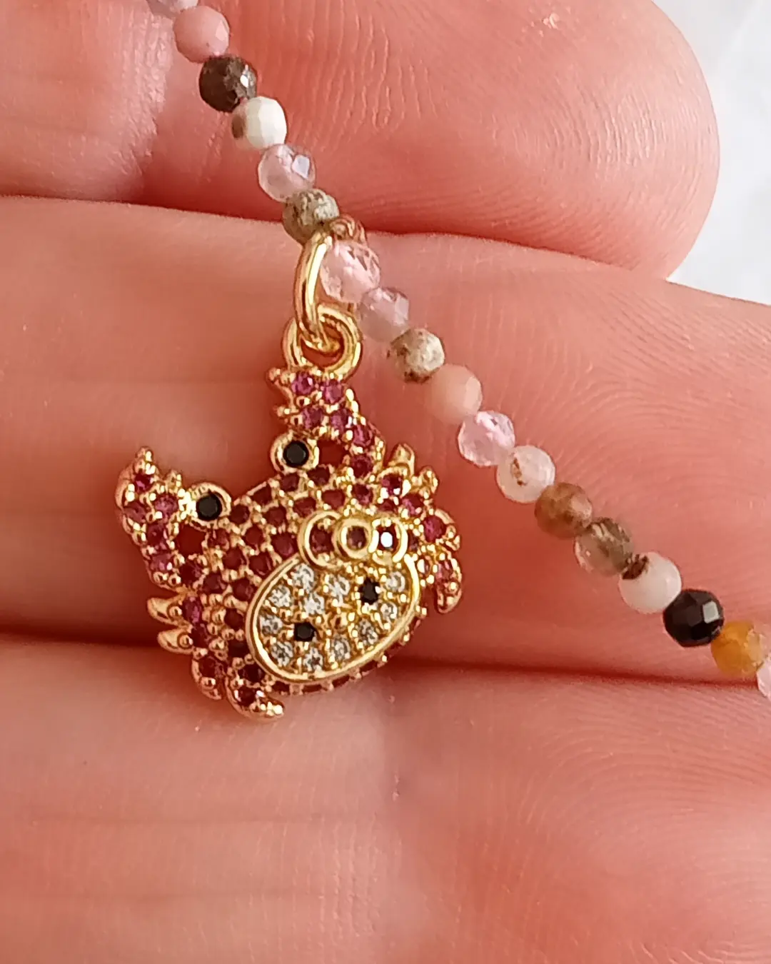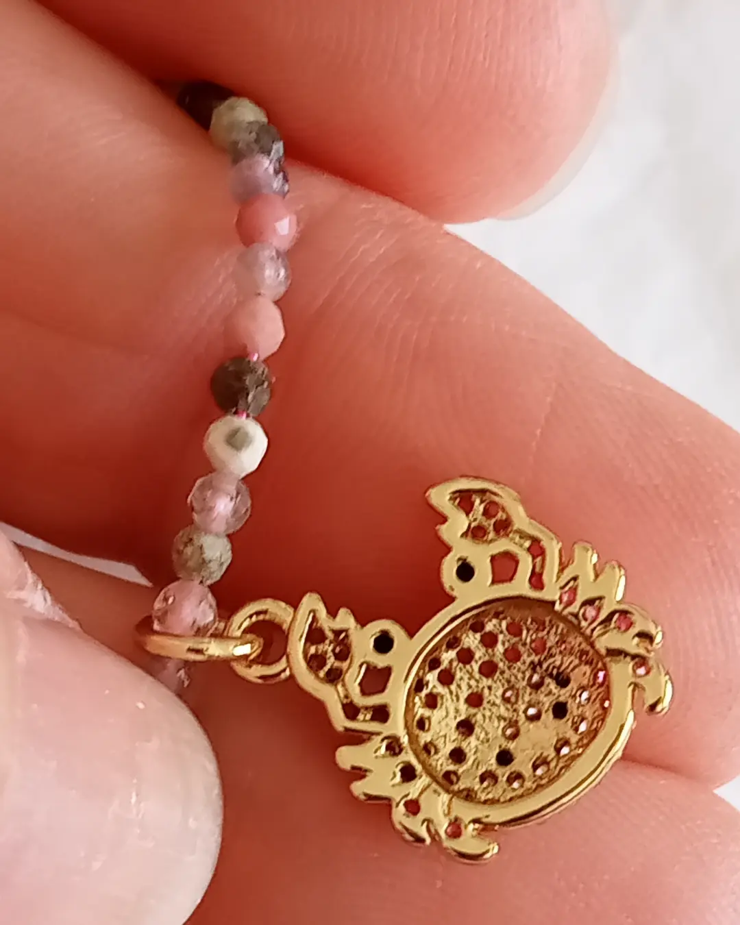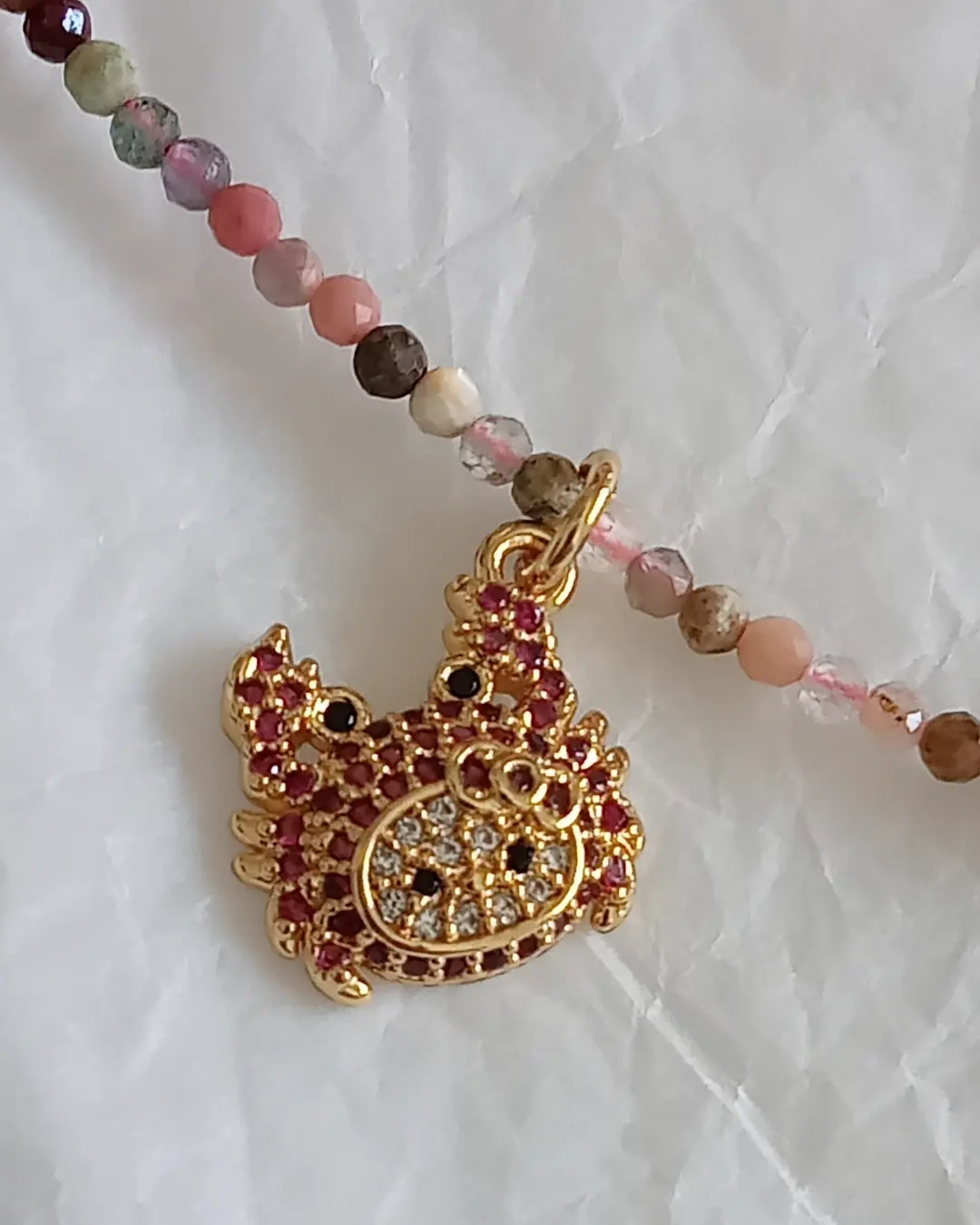 Gargantilla con colgante de cangrejo 🦀 dorada de cuentas de cristales y colgante de aleación de acero inoxidable, antialérgico.