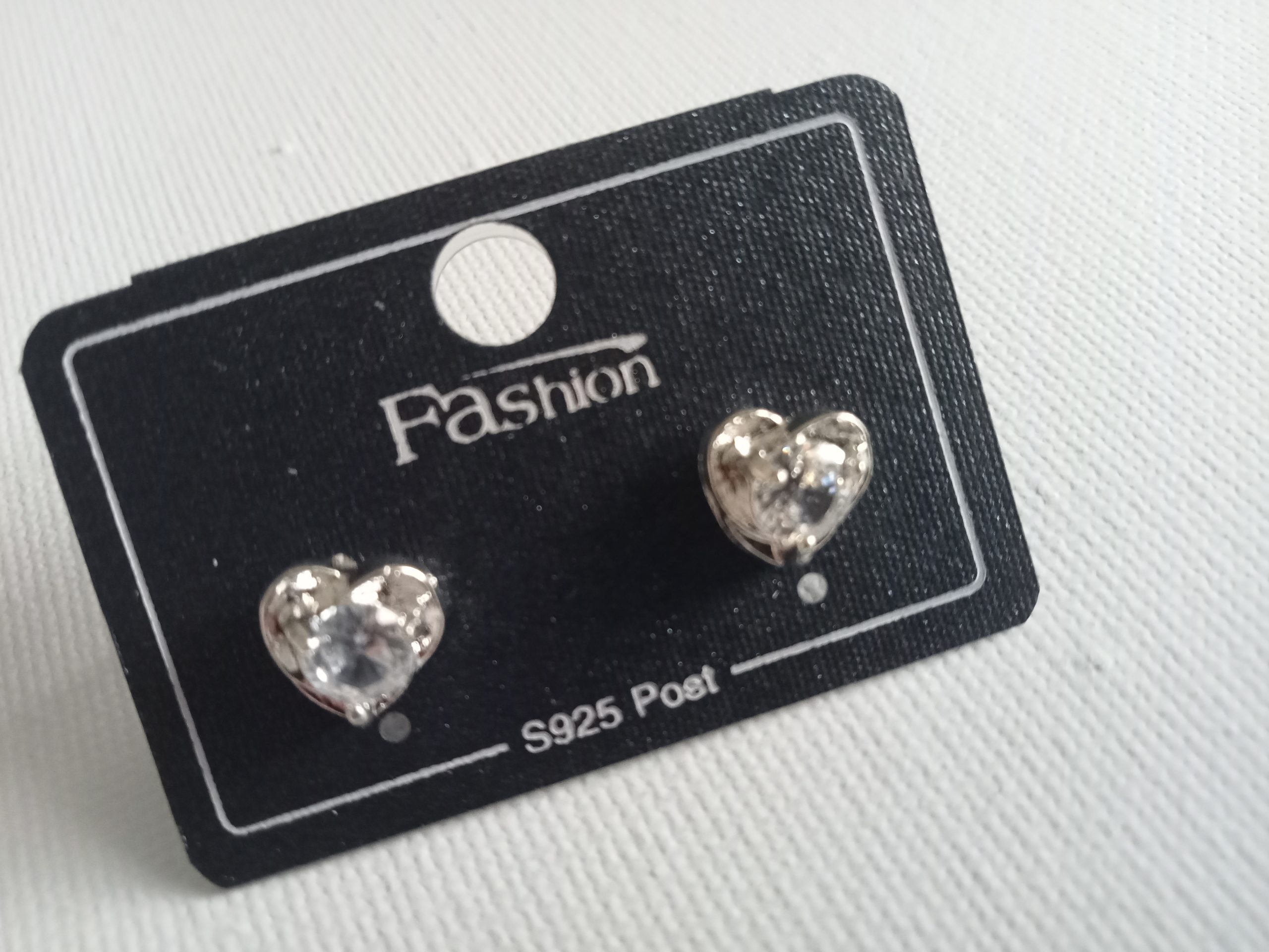 Elegantes pendientes botón con forma de corazón y una circonita Blanca traslucida. En plata 925