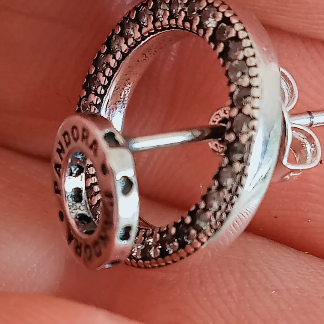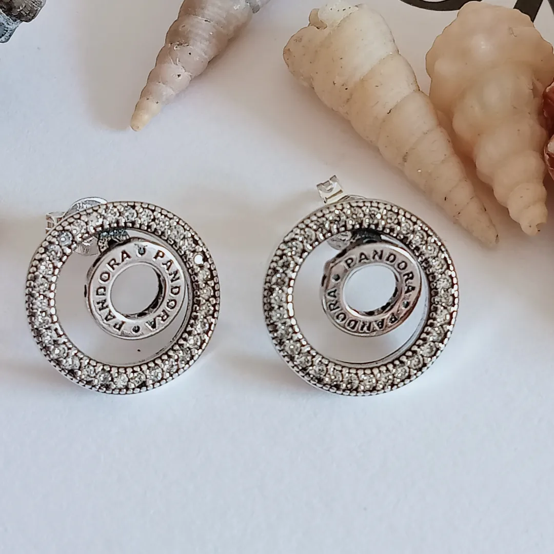 PENDIENTES PANDORA CIRCULOS CON LOGO. 🥰 Estos pendientes de dos piezas presentan un logotipo de PANDORA en el círculo frontal y circonitas ✨ en el círculo posterior, lo que agrega deslumbramiento al diseño gráfico bidimensional.
