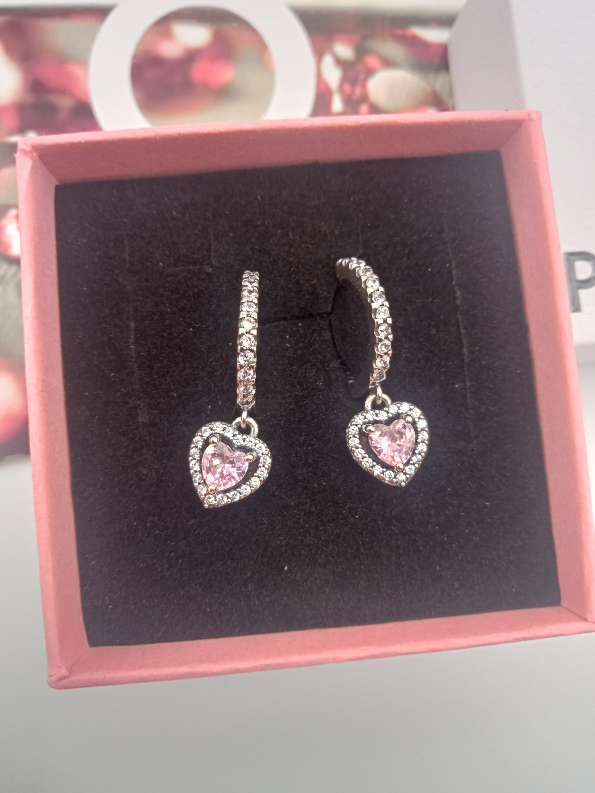 Elegantes pendientes Halo de luz con corazón rosa y una Estela de circonitas.