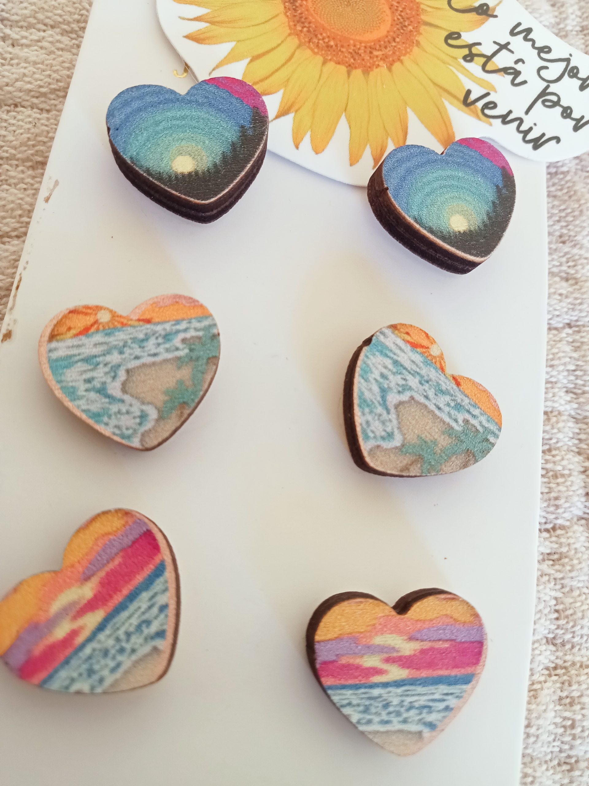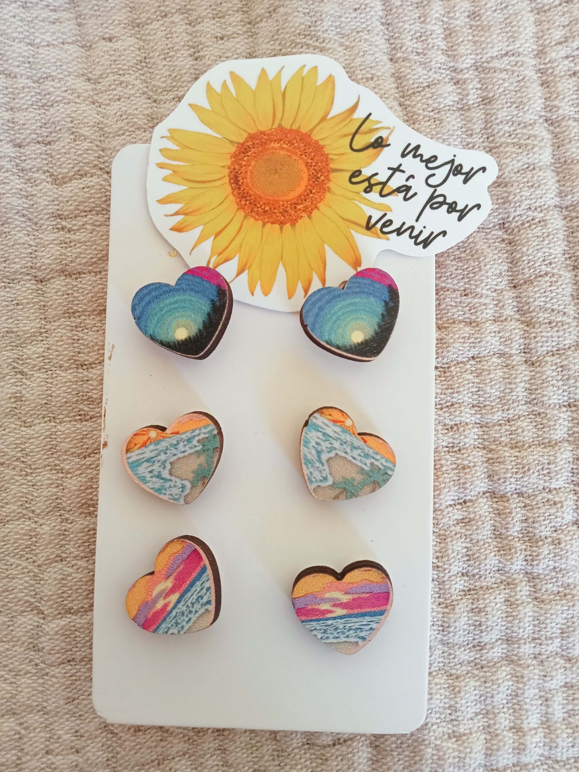 Bonitos pendientes con forma de corazón,tres pares con estampado marinos
