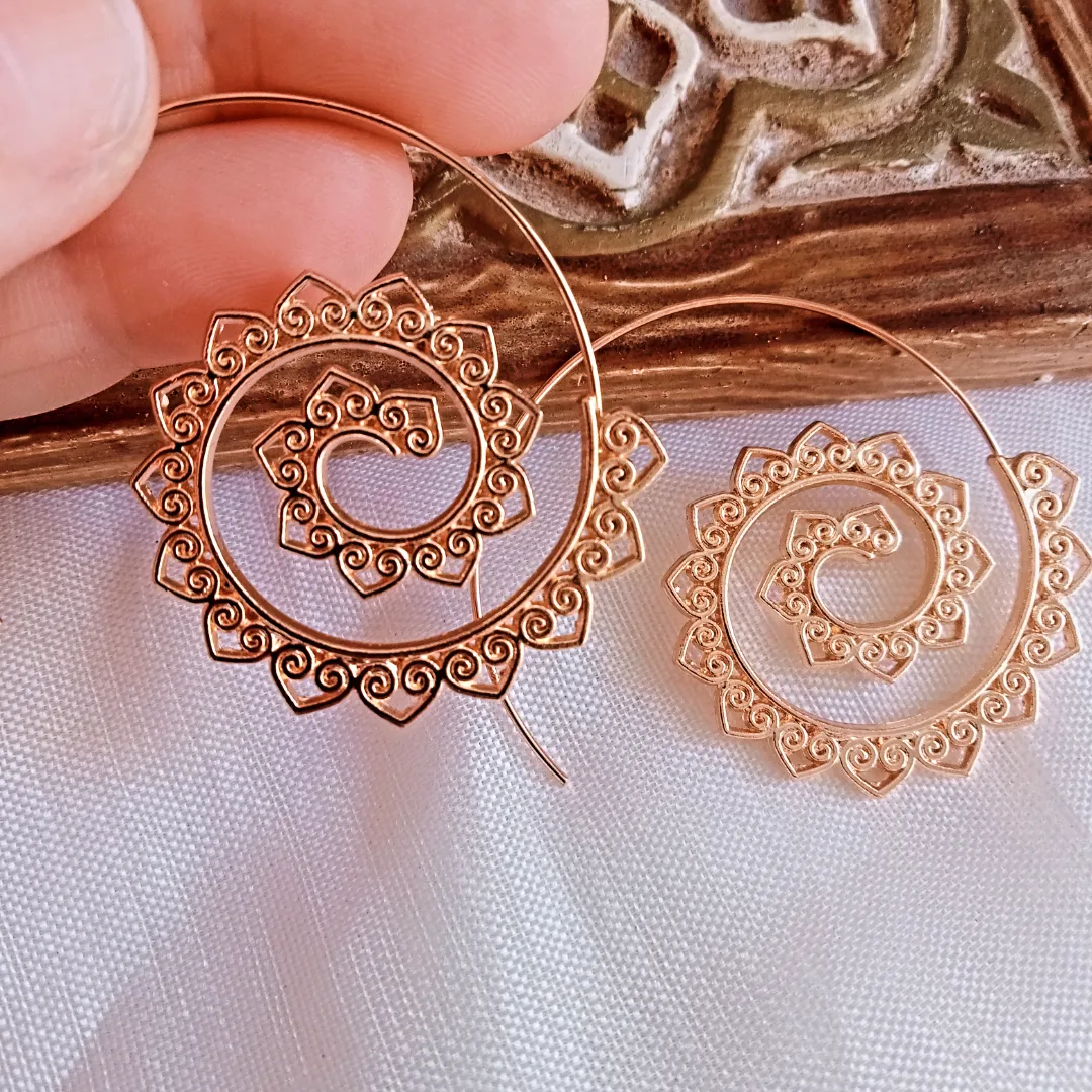 Bonitos y originales pendientes de diseño de filigrana,en color cobré
