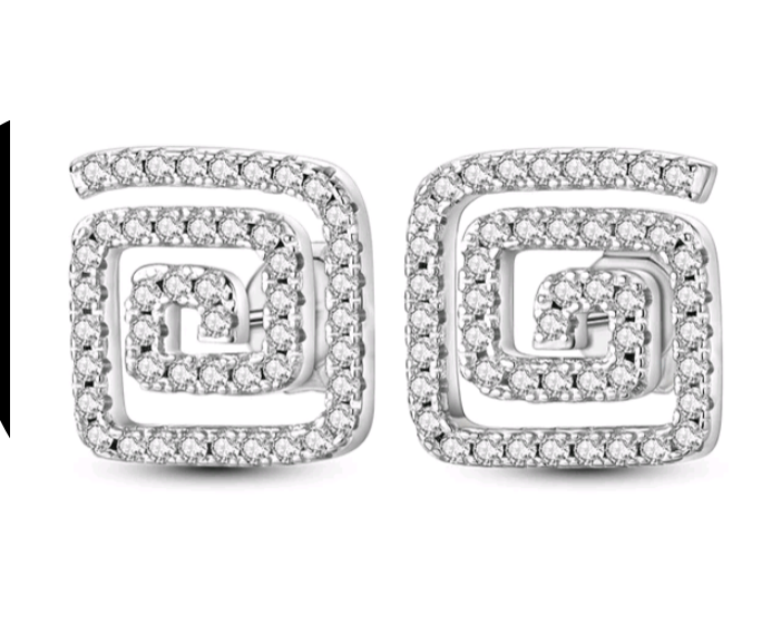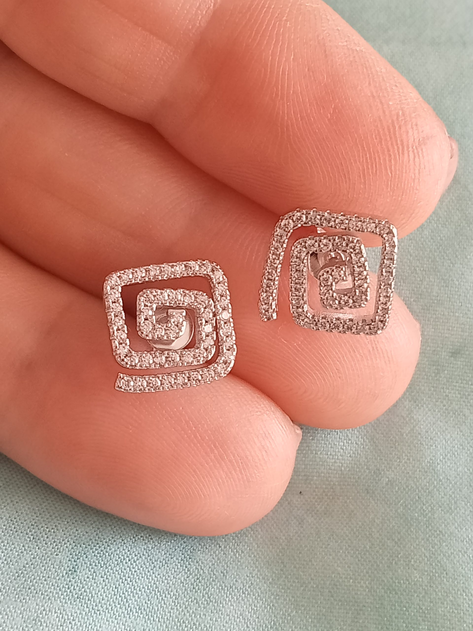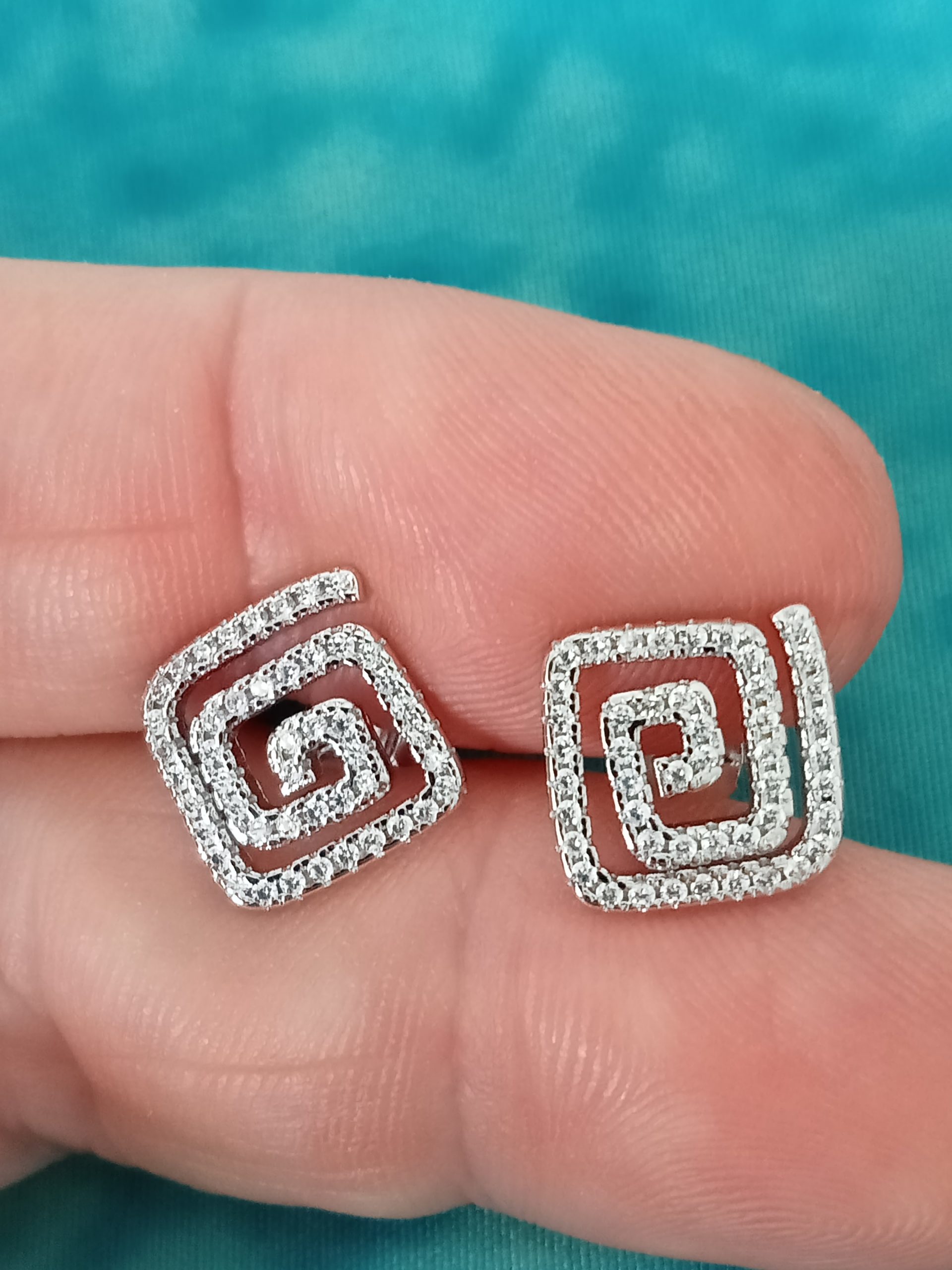 Elegantes pendientes con forma cuadrada en zig zaz. Rodeado de circonitas.