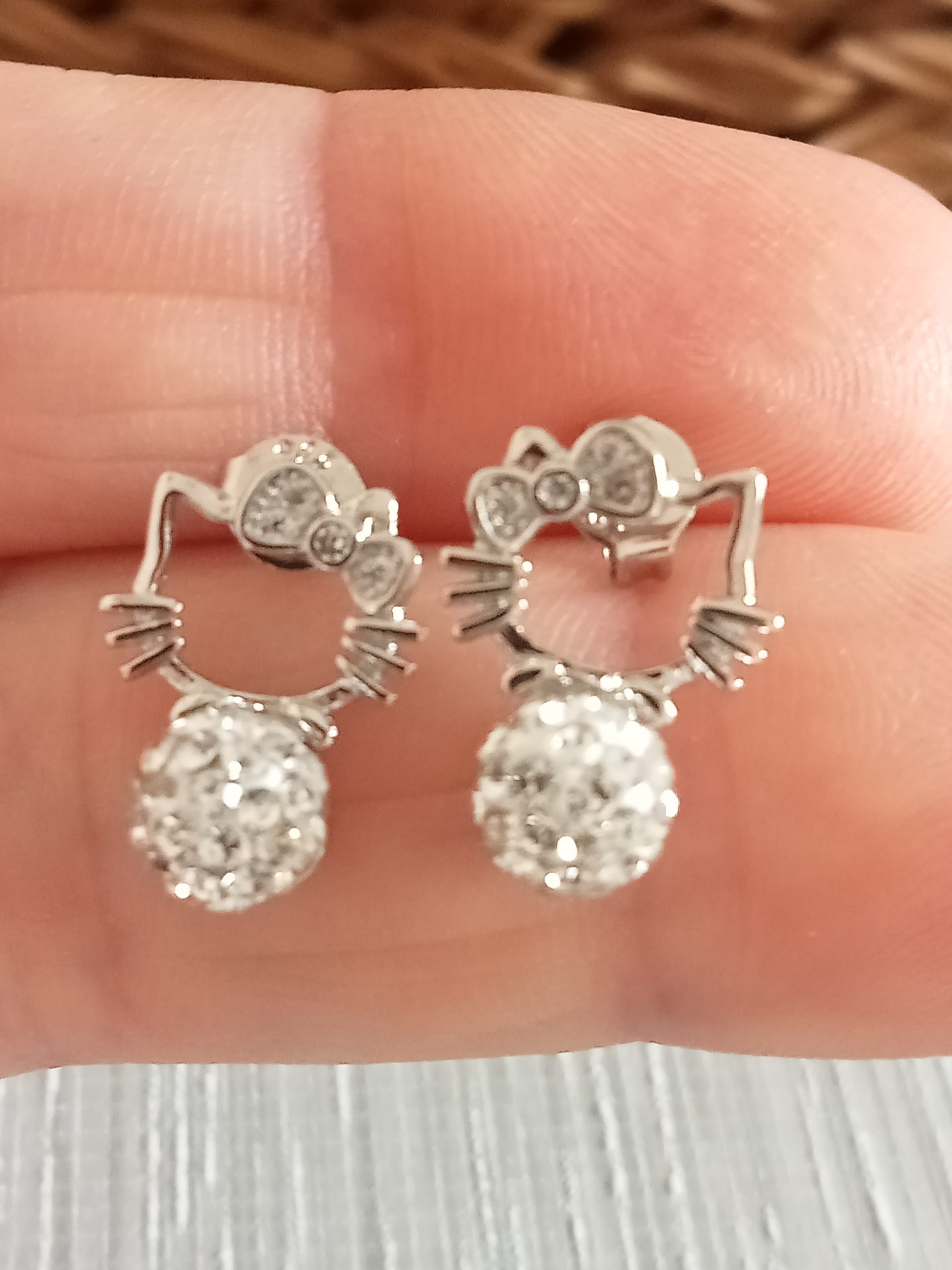 Preciosos pendientes con forma Hello Kitty💖con piedrecitas incrustadas en una esfera.