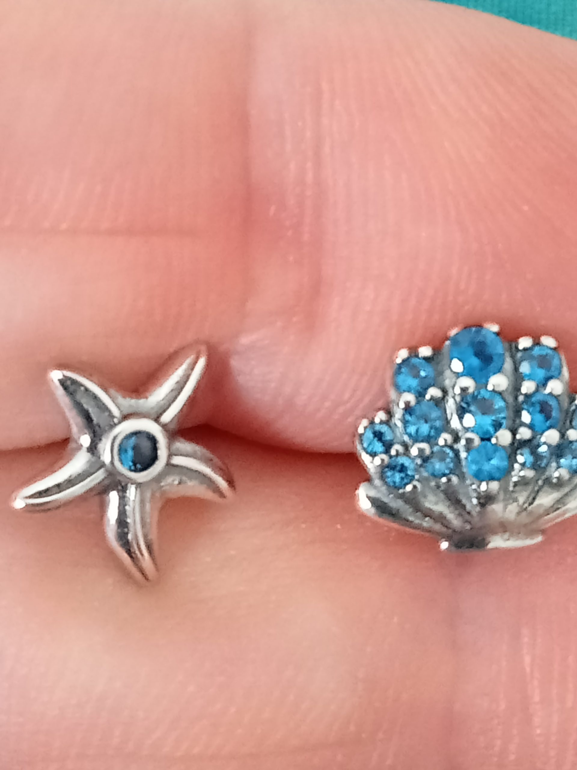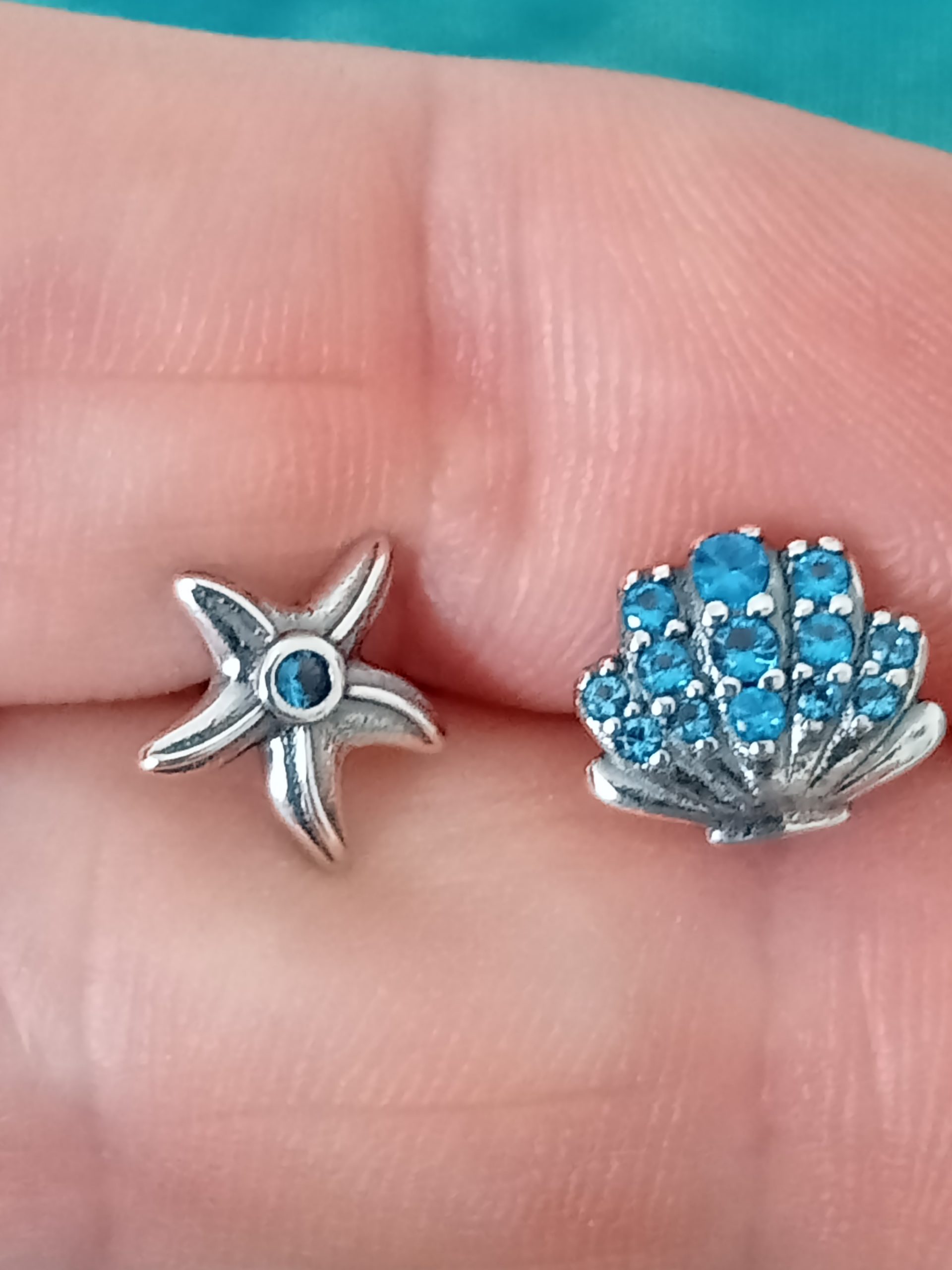 Bonito pendientes pegados en plata 925 ,con la forma de una concha de Mar y una Estrella.