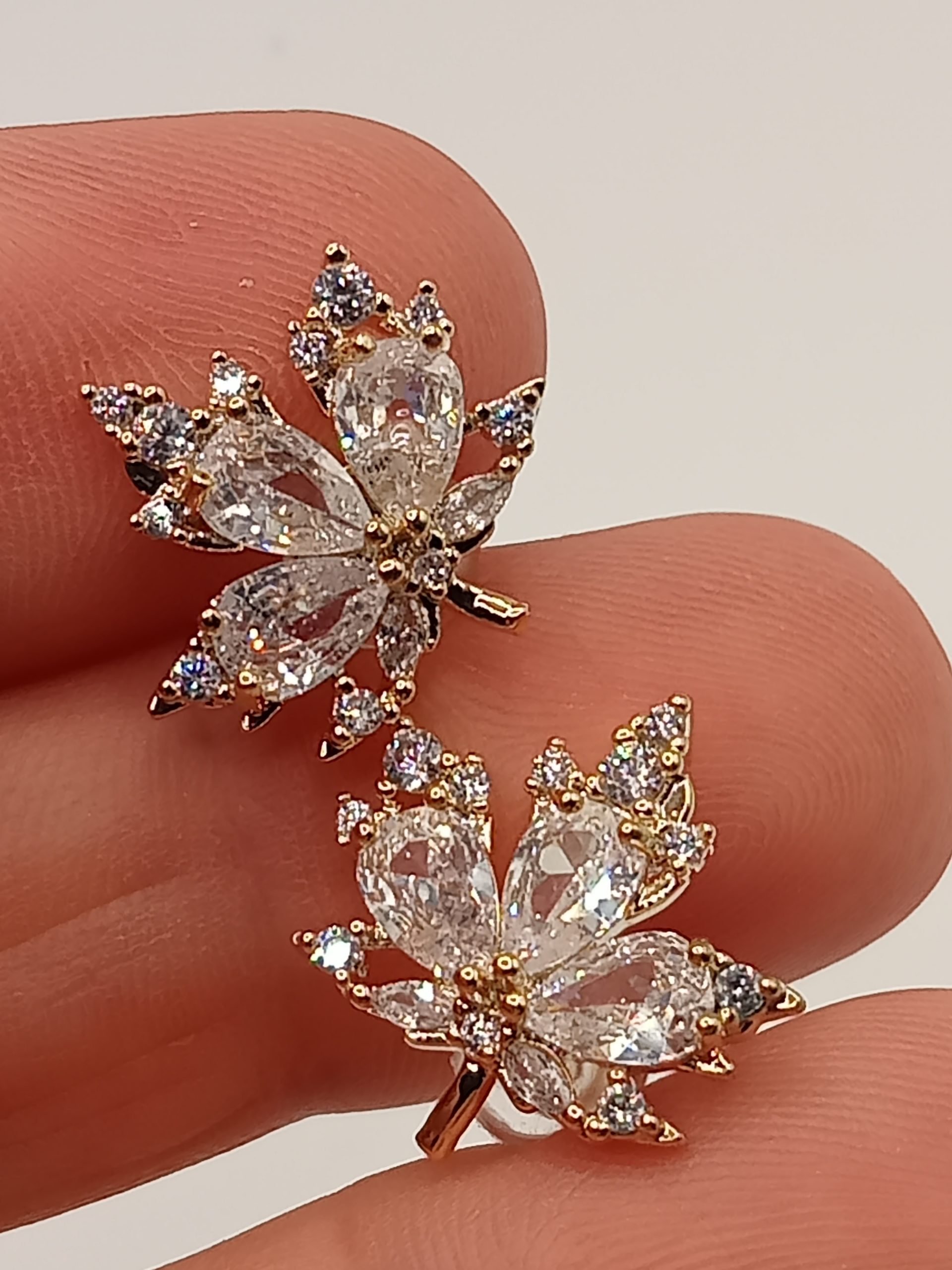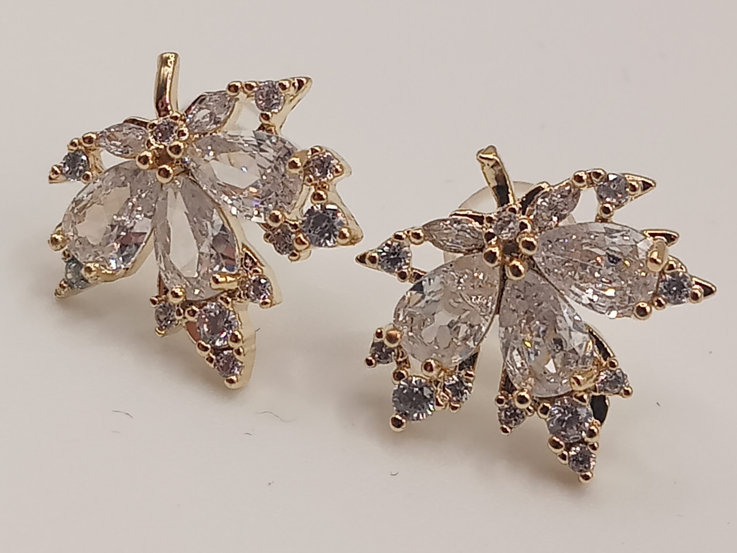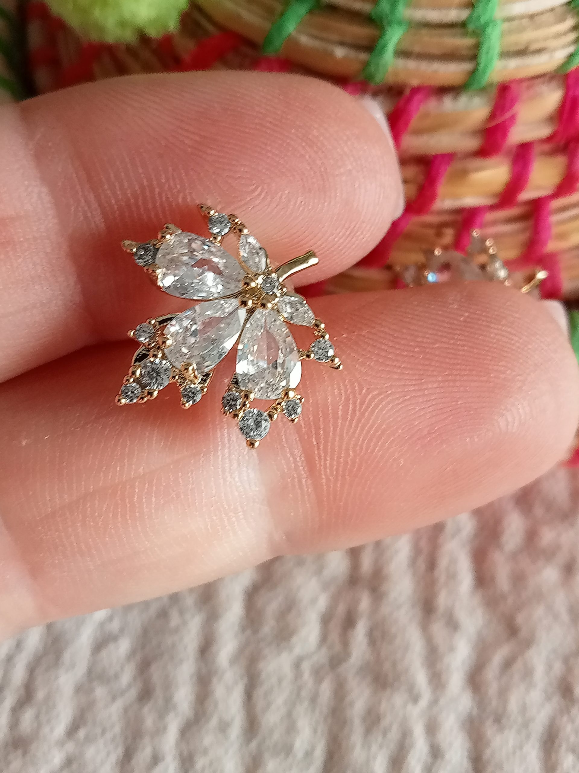 Bonitos pendientes con forma de hojas recubierto en dorado con cristales Blancos  que da forma a las hojas.