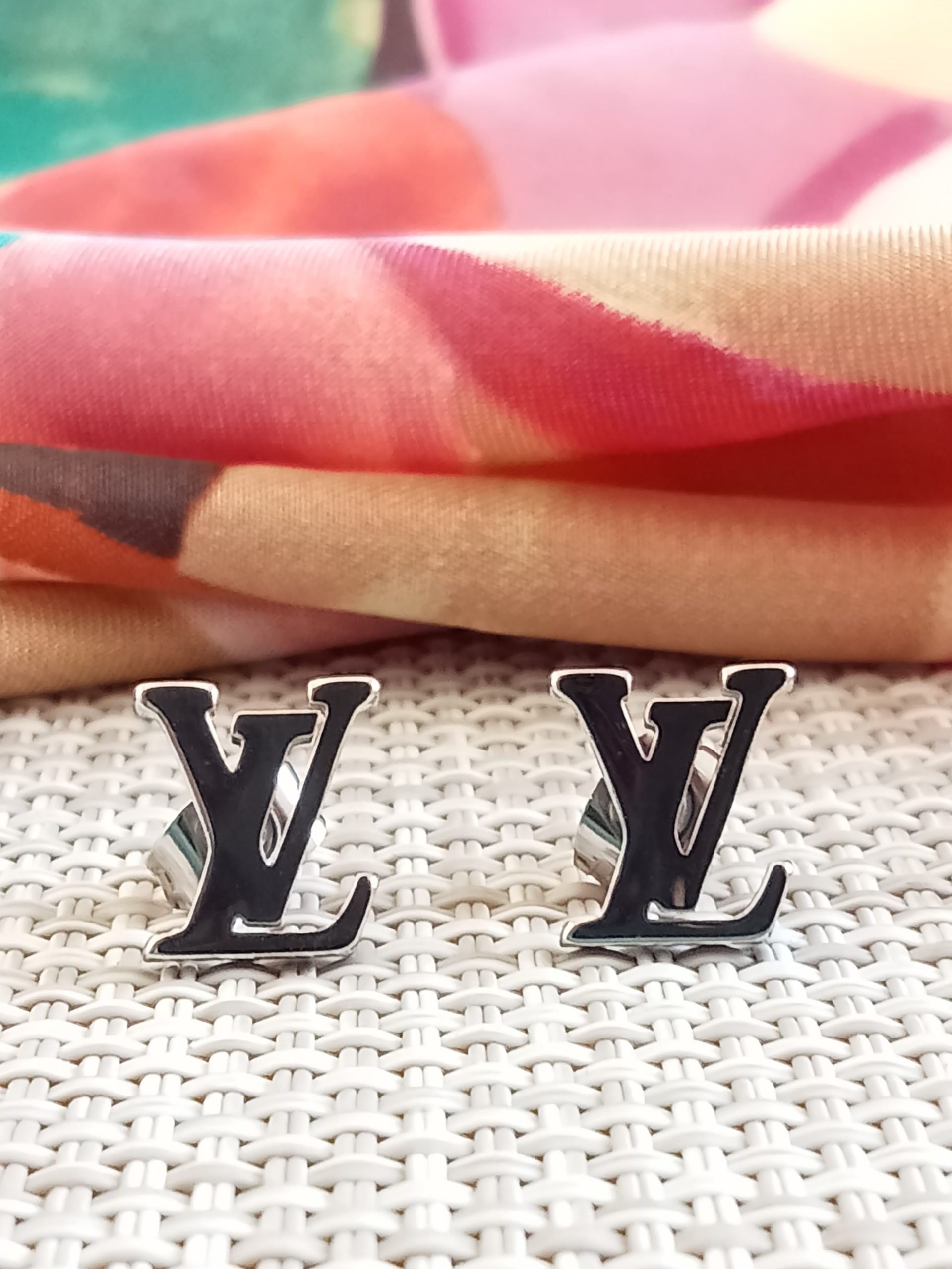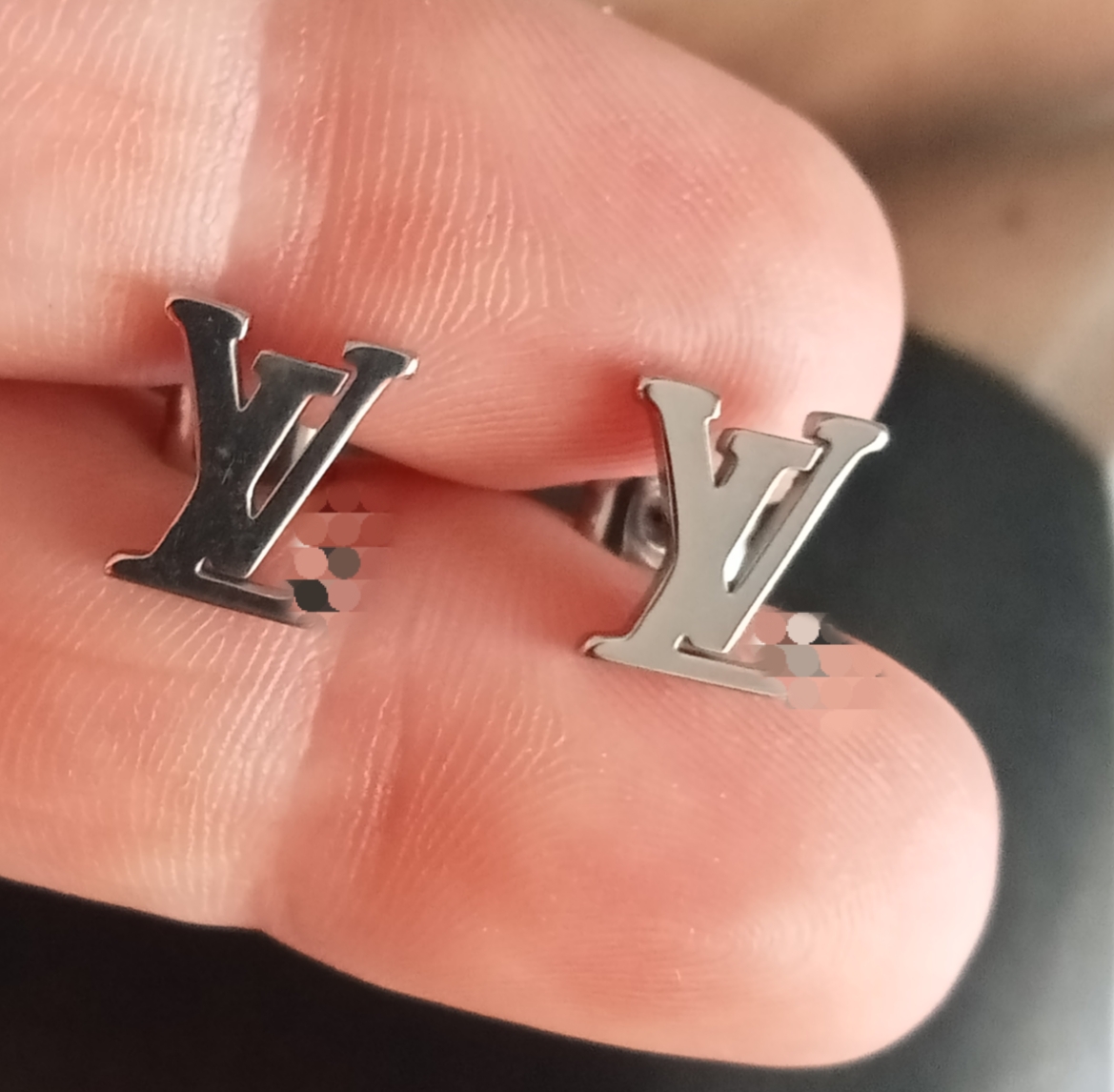 Pendientes pegados pequeños iniciales LV.