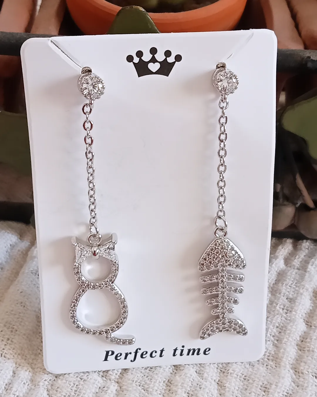 Pendientes largos de gatita y pez 😸🐟