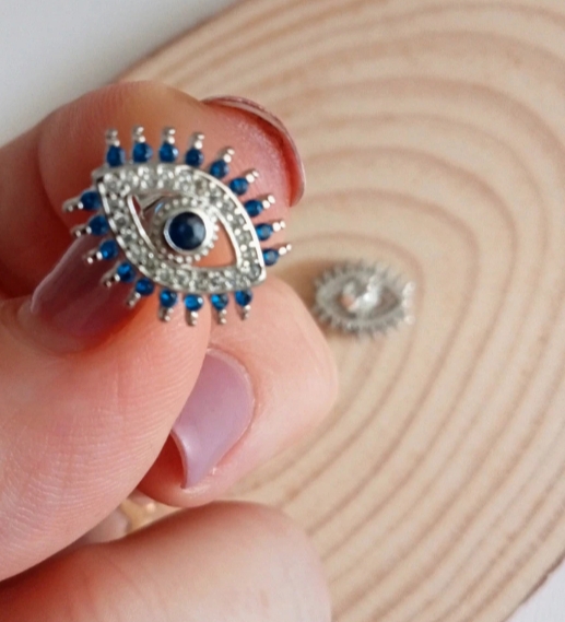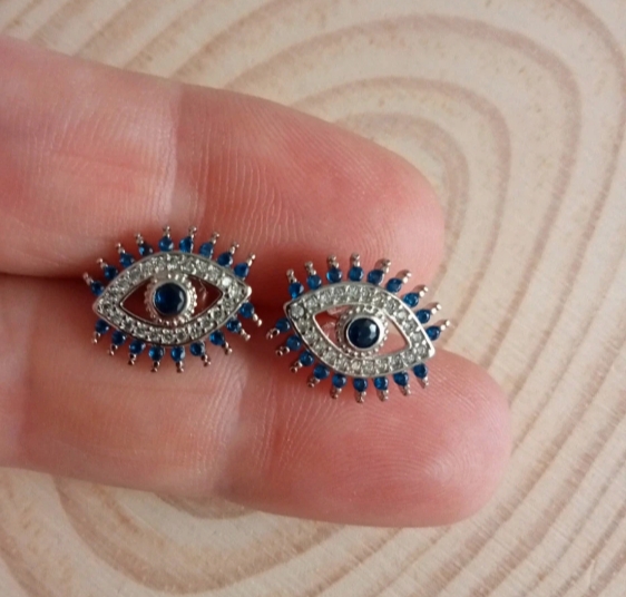 Originales pendientes en plata de Ojo Turco con circonitas.
