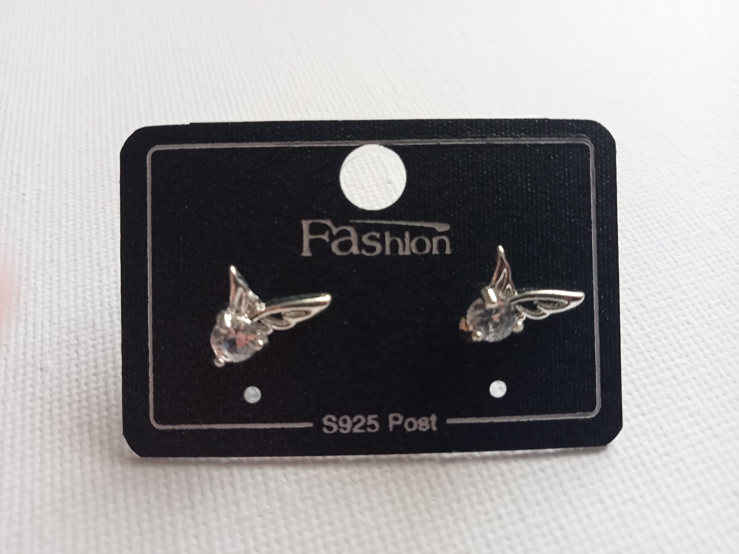 Bonito pendientes en plata 925 con forma de alas y una circonita centrada.