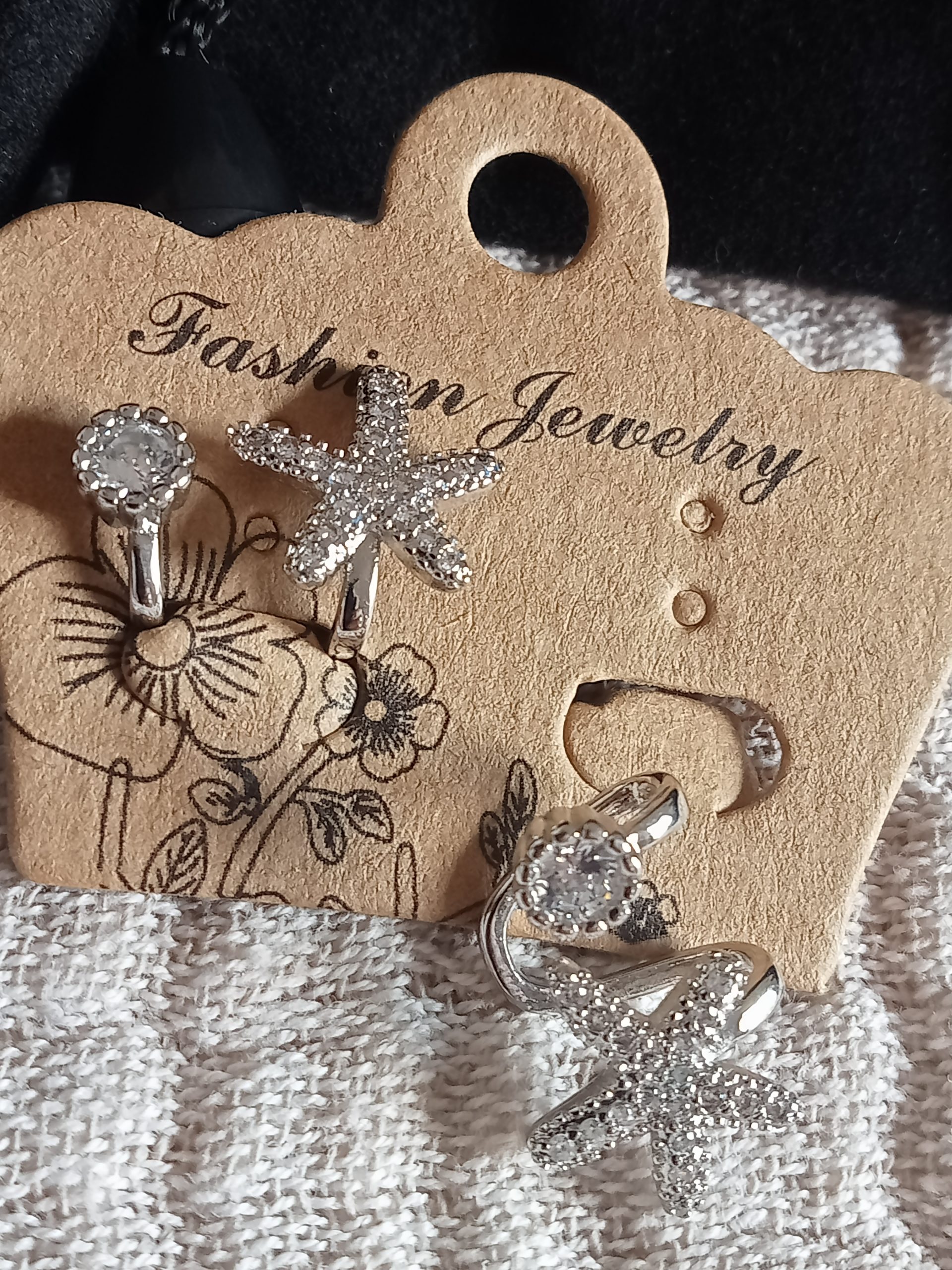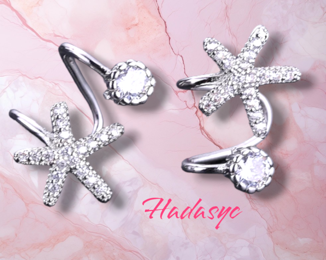 Bonitos pendientes sin perforación con estrellas y circonitas cúbicas ,en plata de ley 925💖