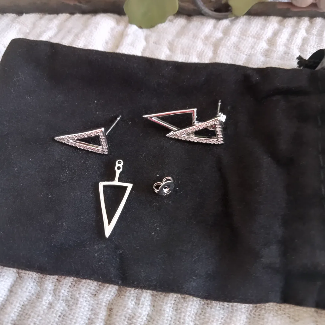 Originales Pendientes con forma triangular,dos en uno 🔻con circonitas y en plata 925.