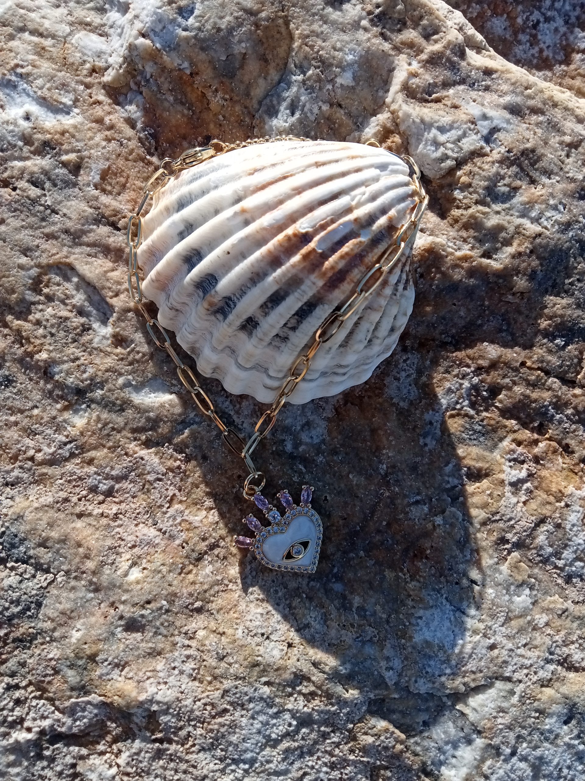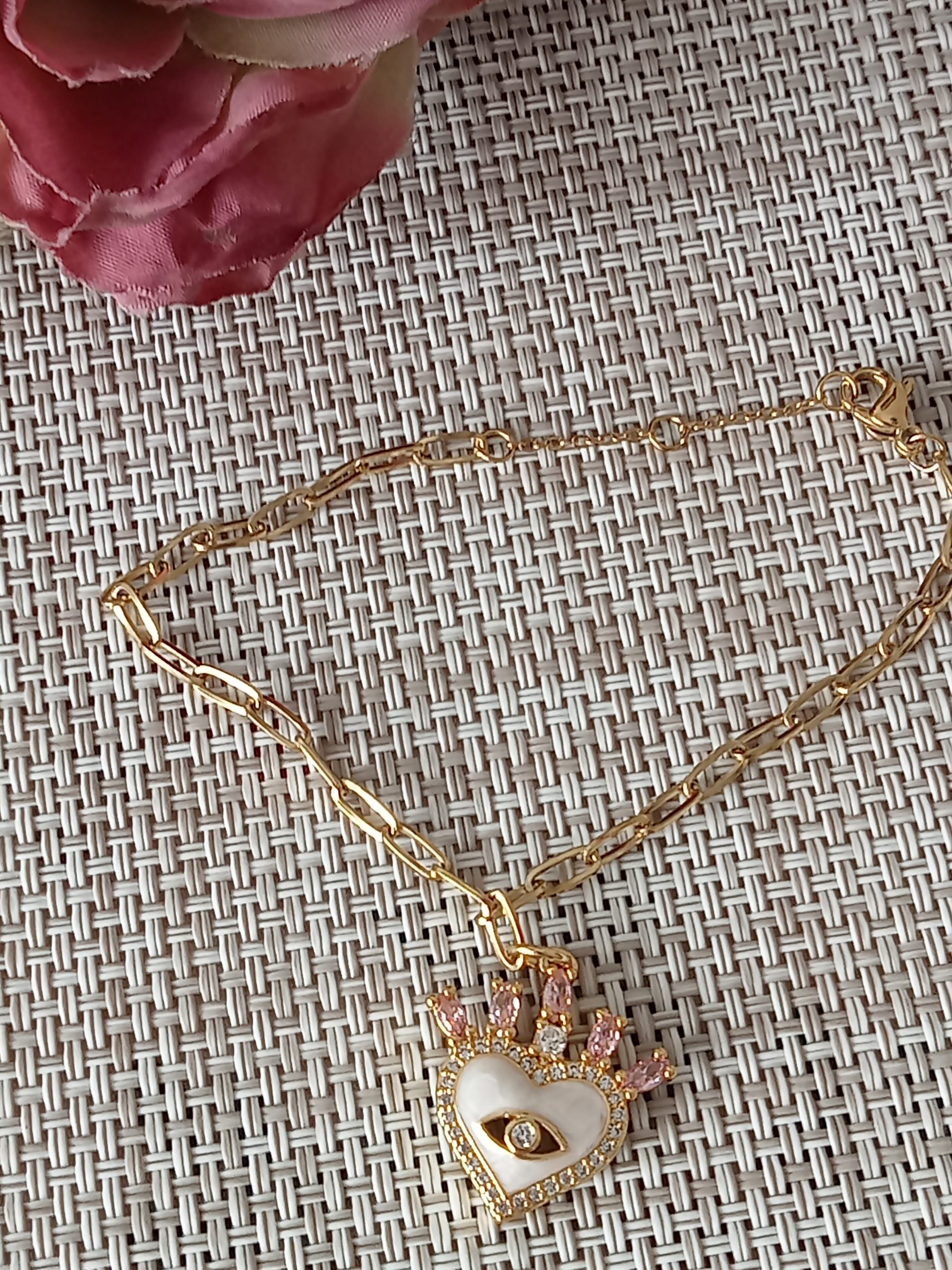 Bonita pulsera dorada en acero inoxidable,con colgante charms Ojo con brillos 💖✨