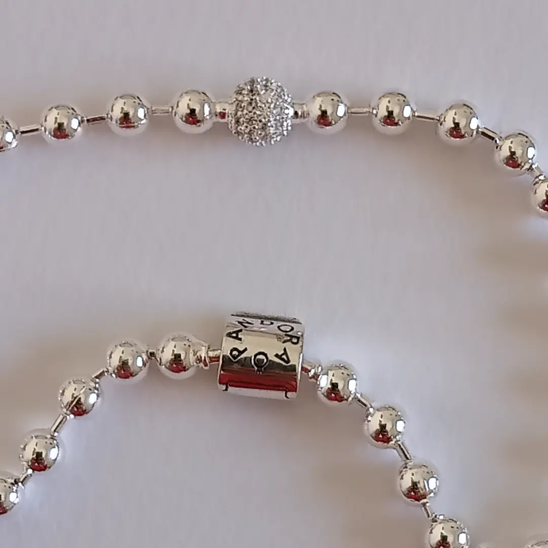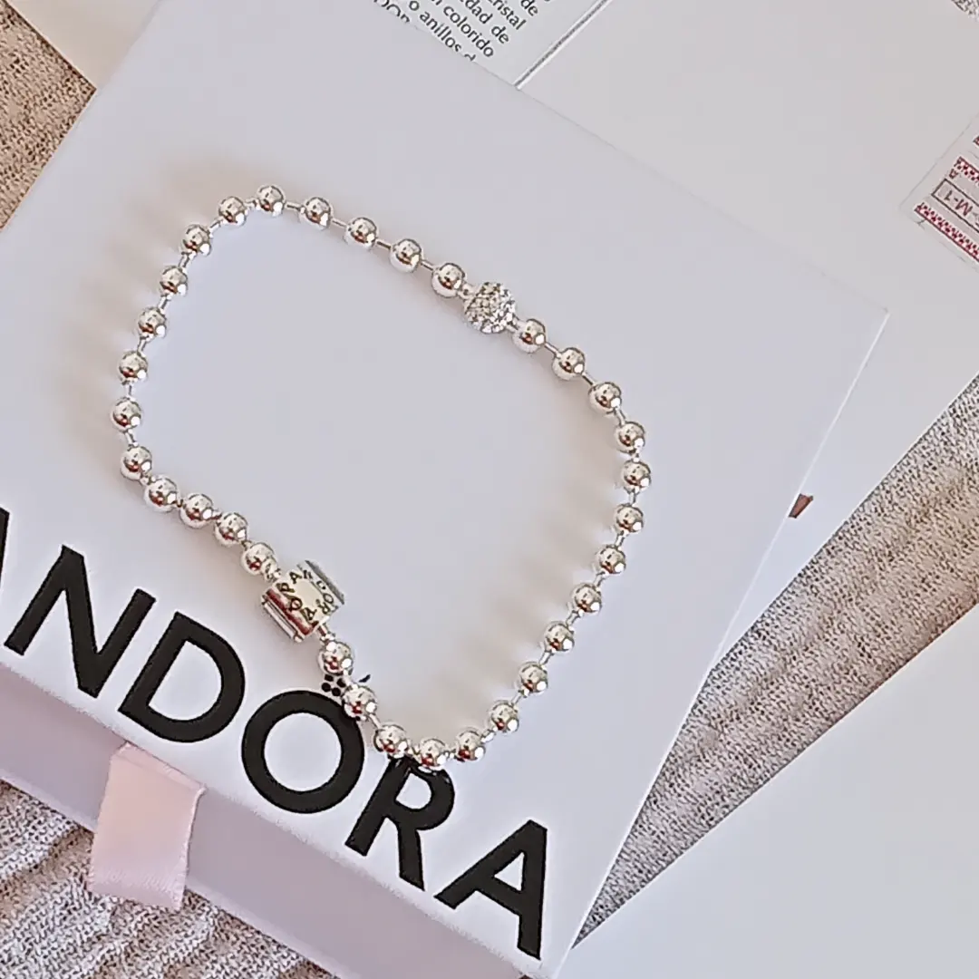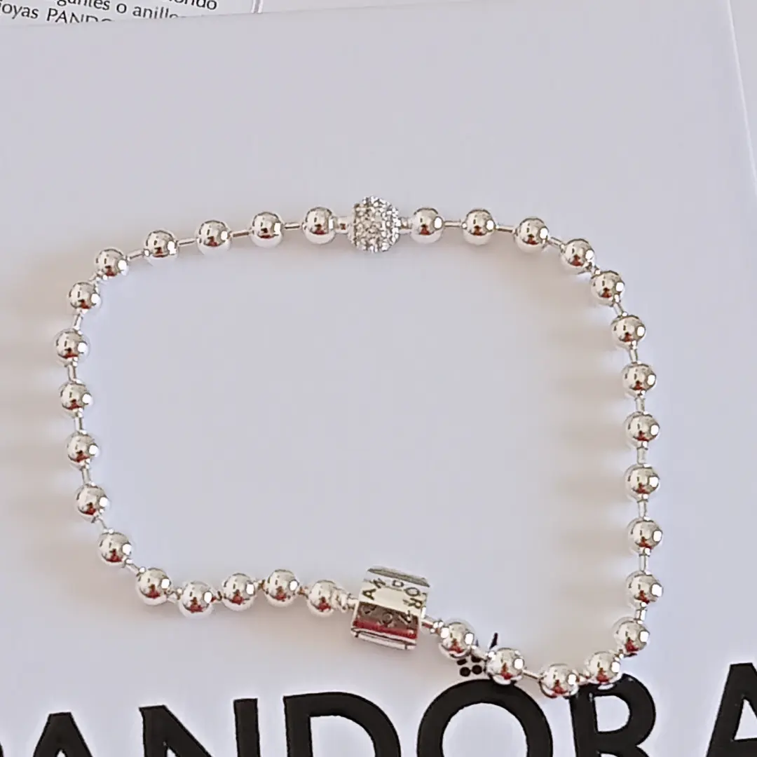 Pulsera de cuentas Pandora y una de las cuentas adornadas en circonitas cúbicas ,cierre de barril.💖