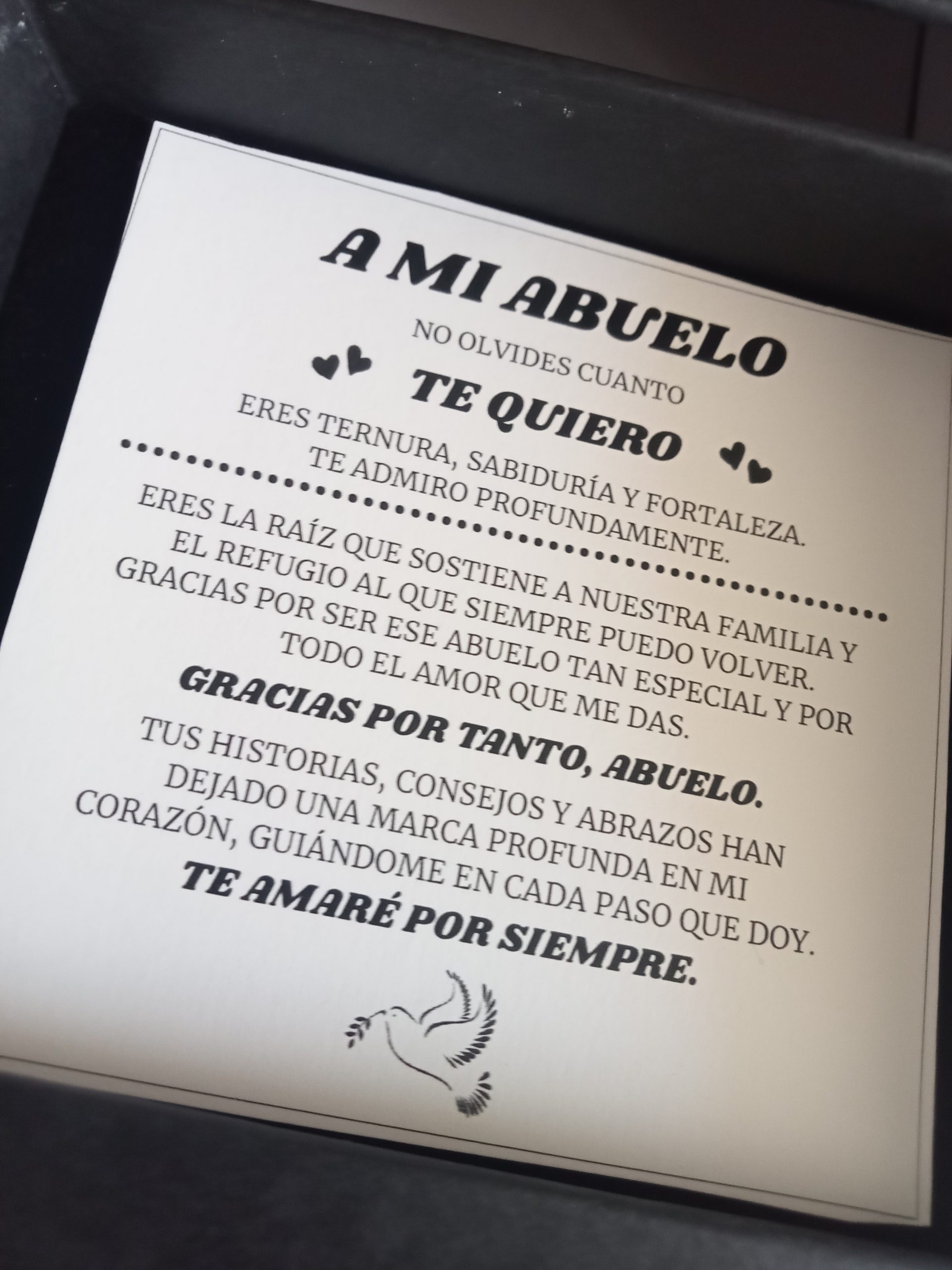 Incluye una tarjeta con dedicatoria emotiva: «A mi Hijo: Hijo mío, eres mi mayor orgullo y el amor más puro que he conocido. Siempre estaré a tu lado, guiándote con el corazón.»