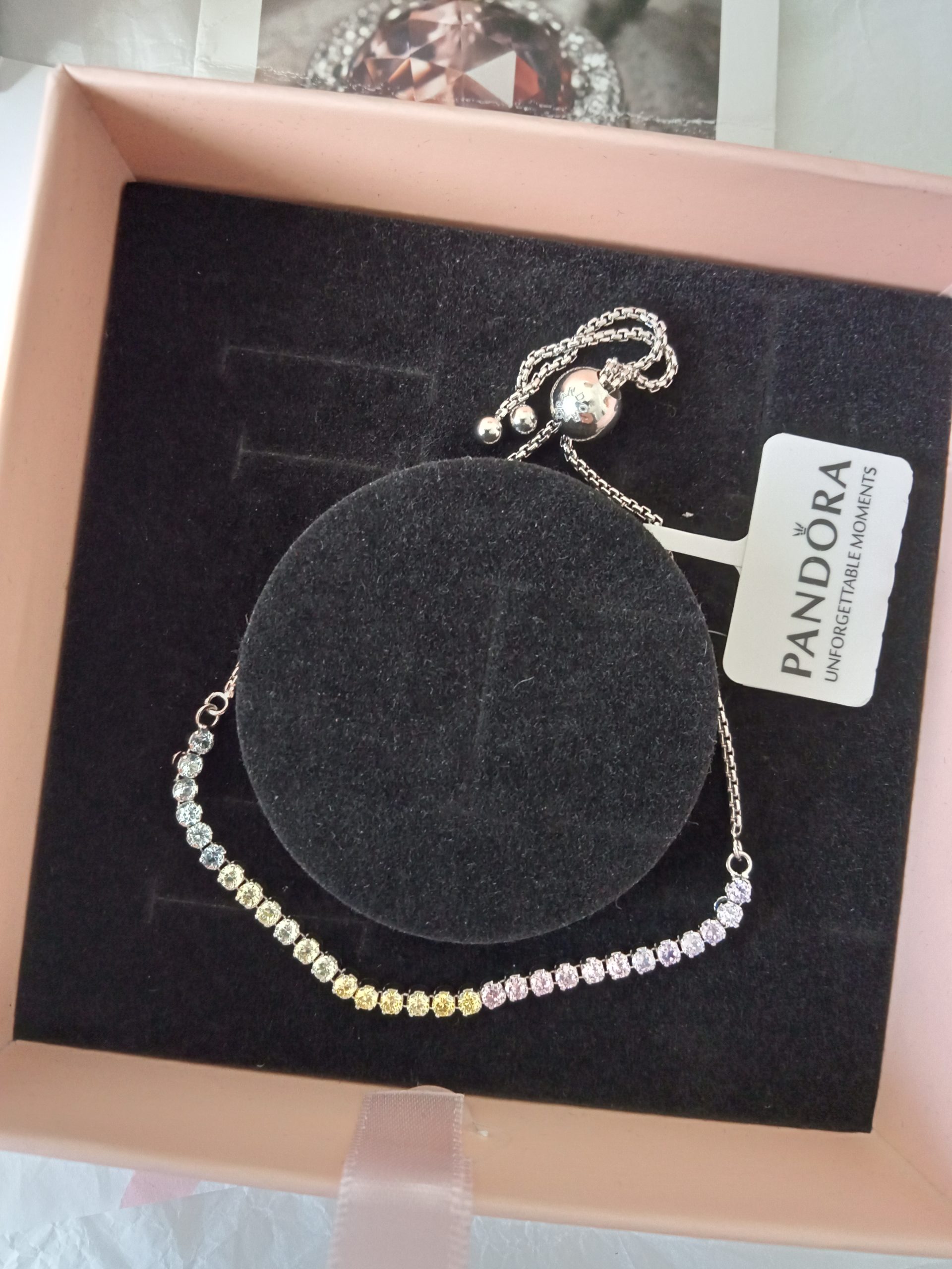 Preciosa pulsera tenis de brillantes de colores circonitas.