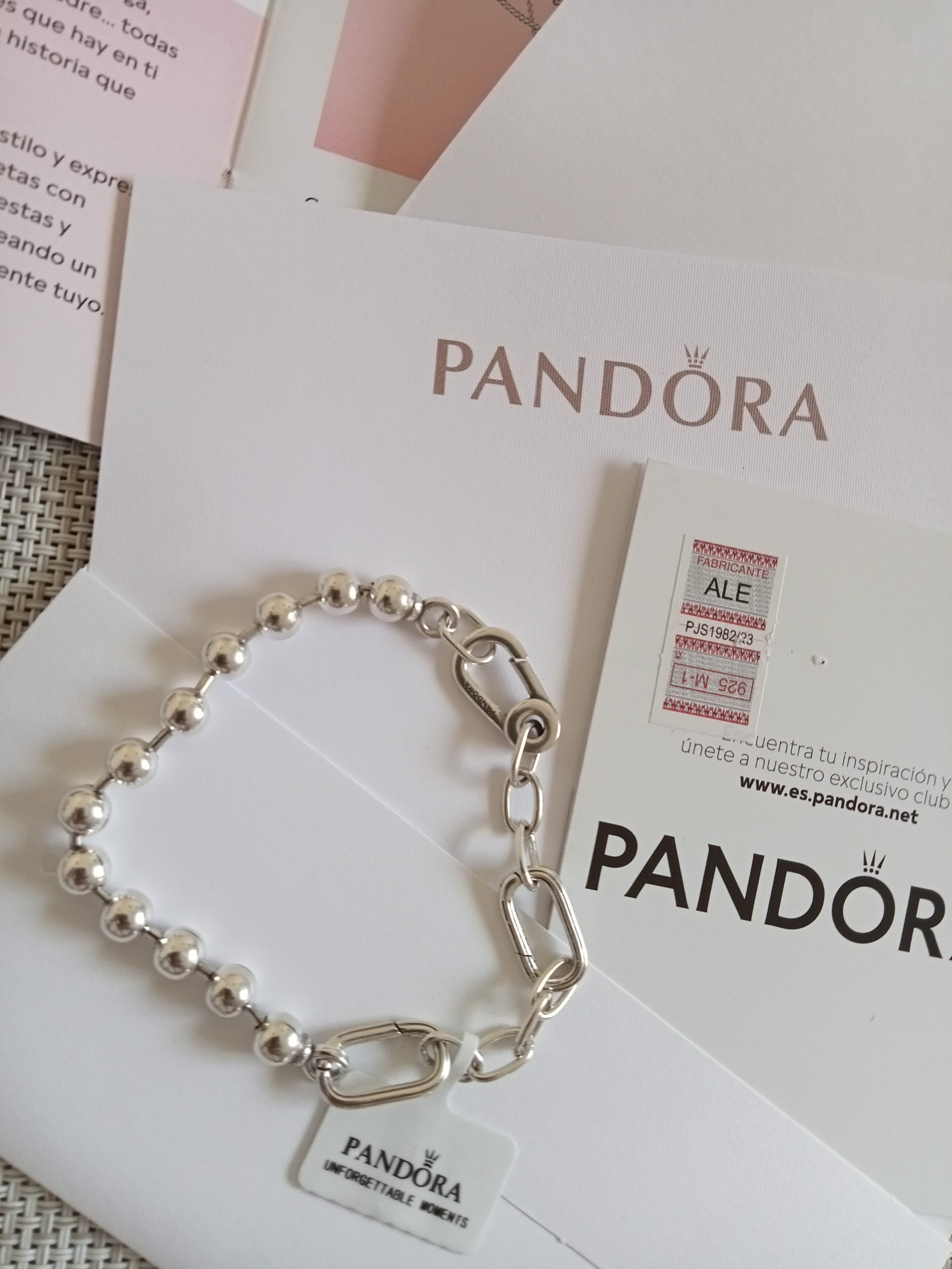 Pulsera de Eslabones Link y Cuentas Metálicas Pandora  S925 Ale ME 💗